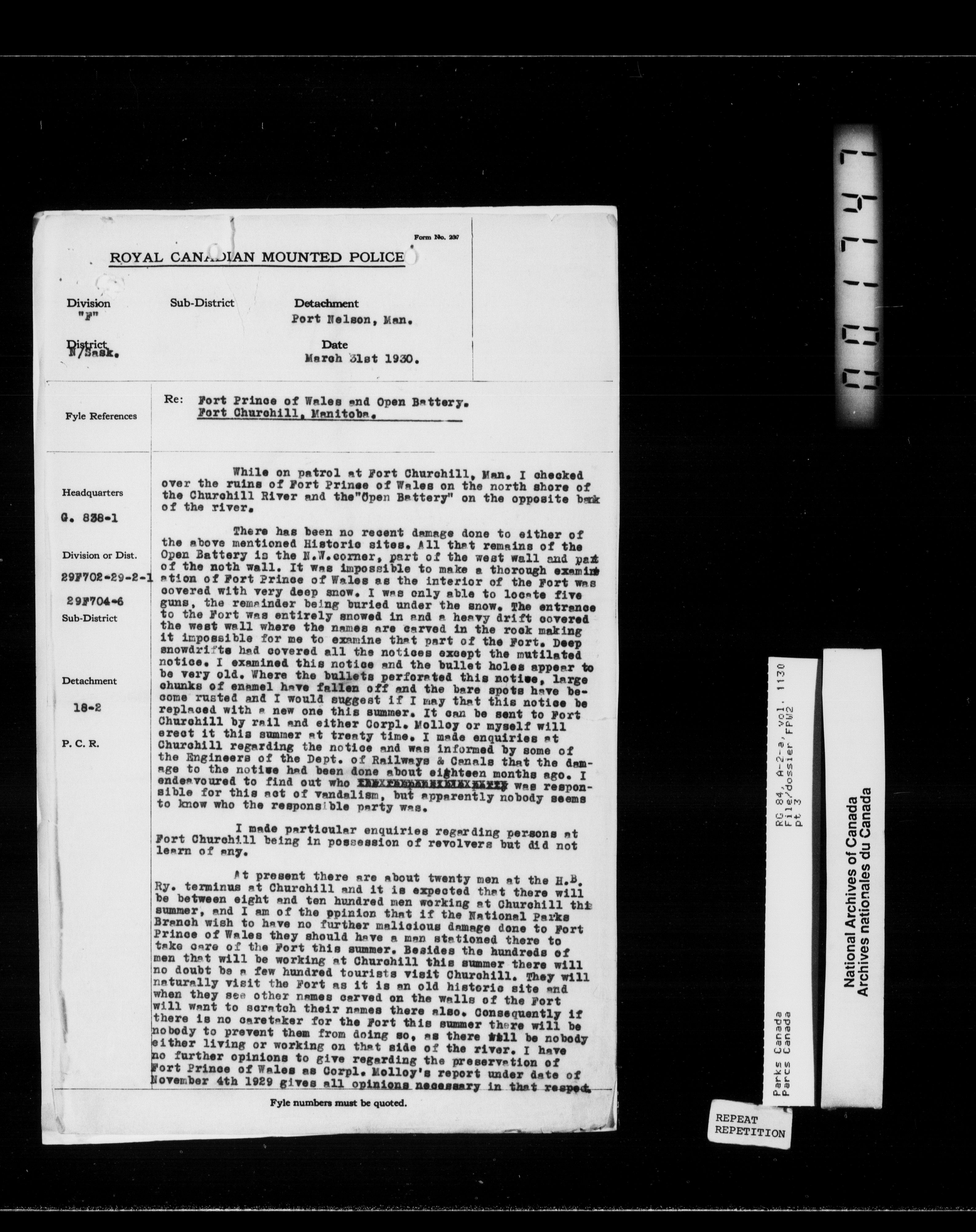 Department of Canadian Heritage, Canadian Parks Service : Park/subject classification system : T-11294
