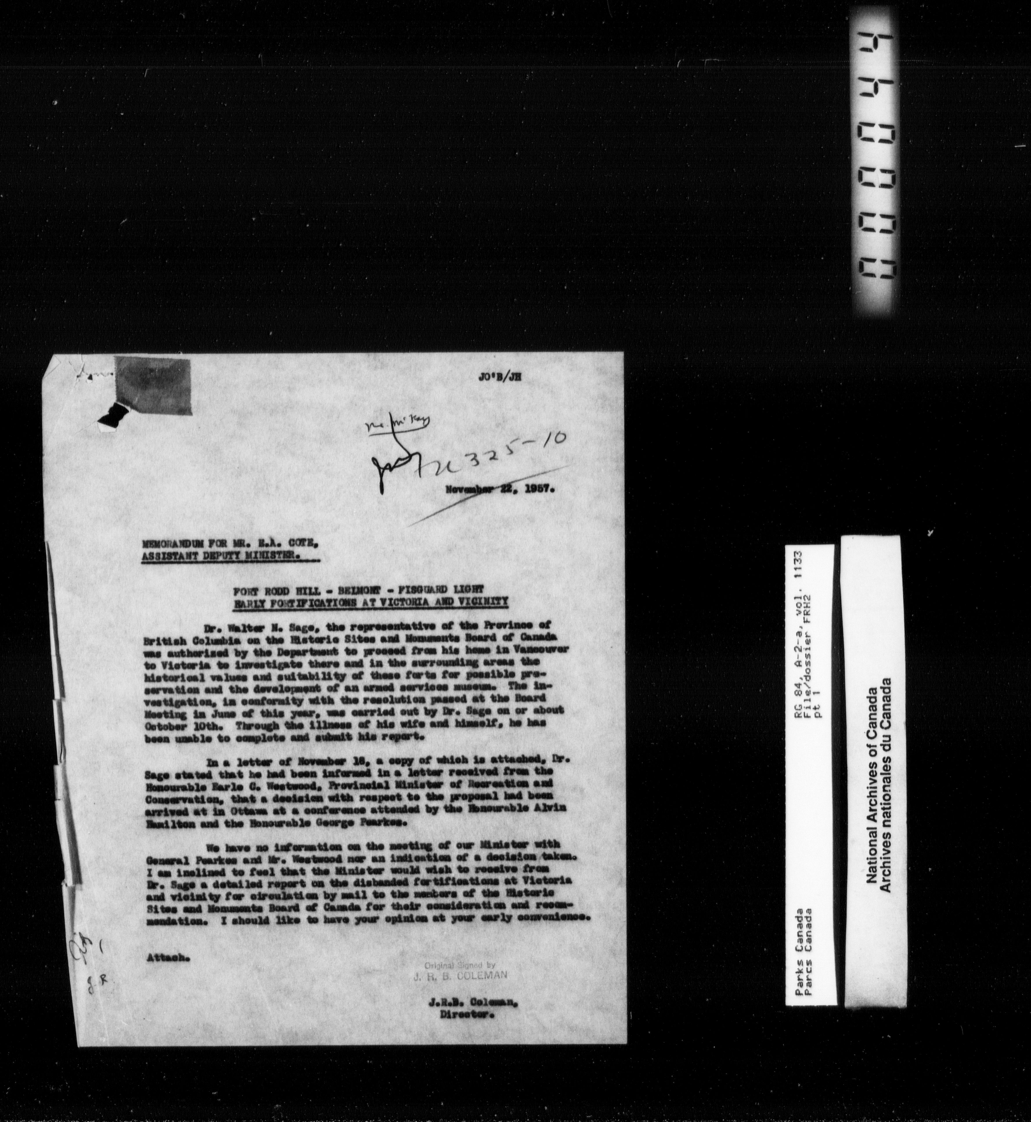 Department of Canadian Heritage, Canadian Parks Service : Park/subject classification system - 11297