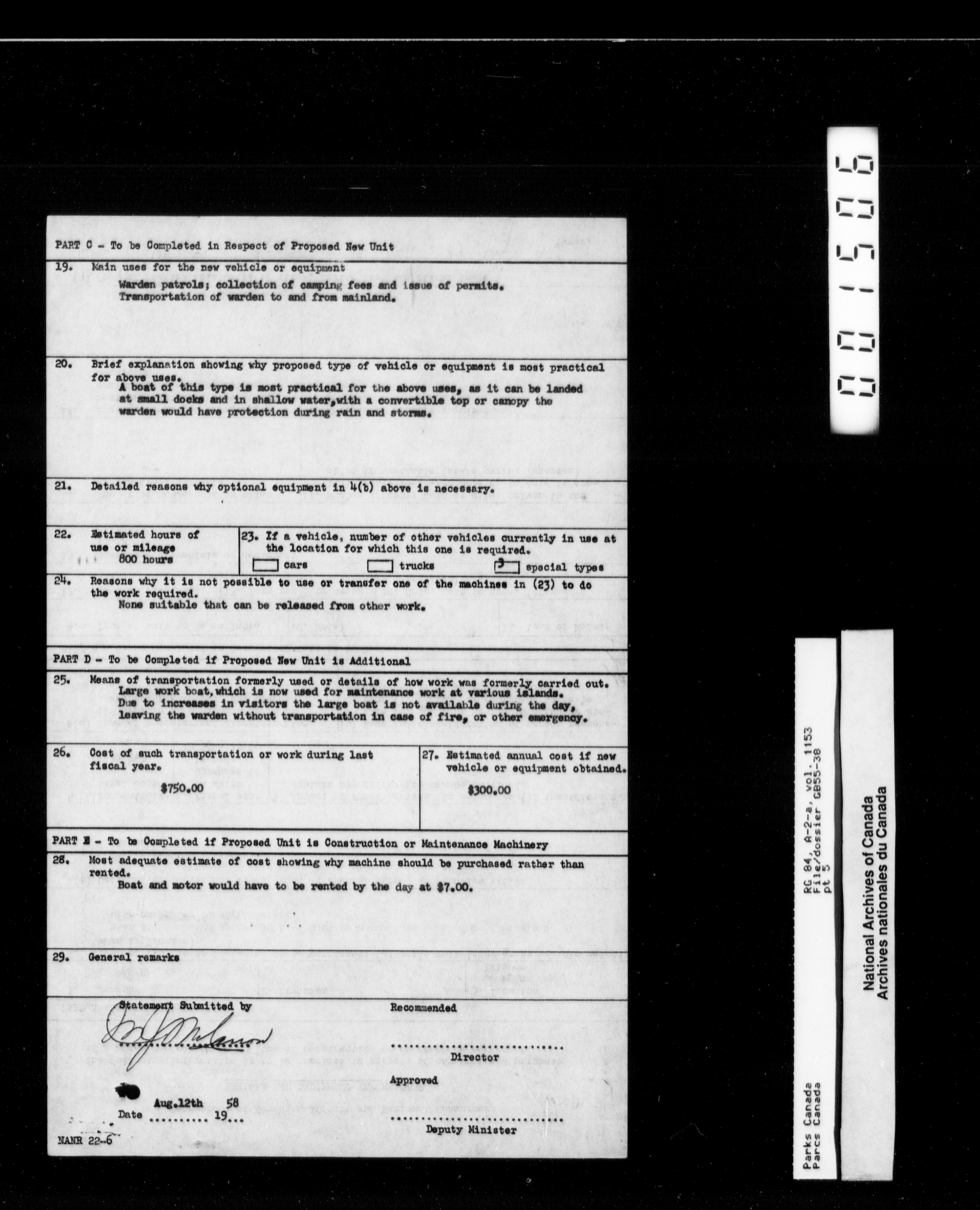 Department of Canadian Heritage, Canadian Parks Service : Park/subject classification system : T-11304