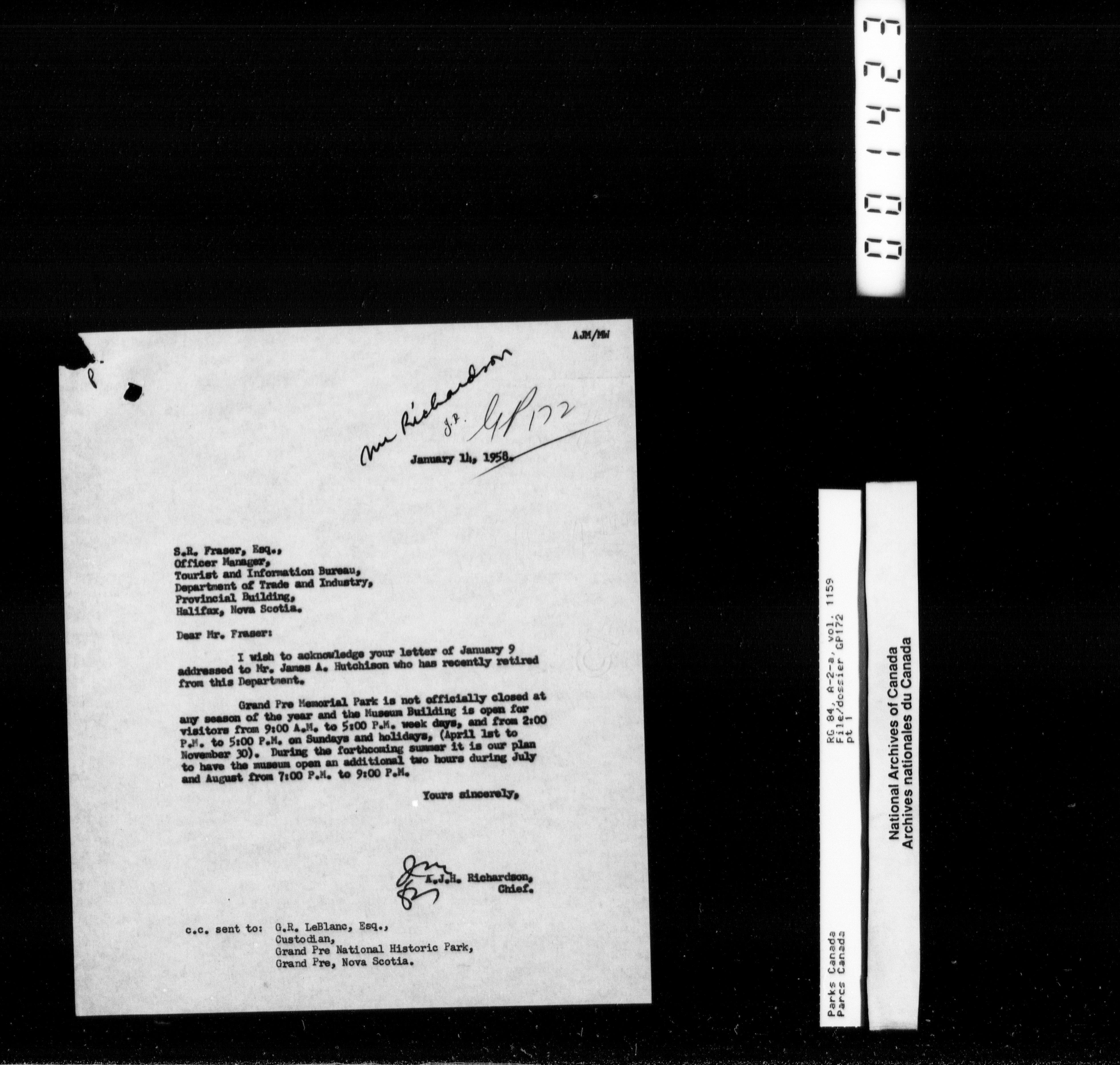 Department of Canadian Heritage, Canadian Parks Service : Park/subject classification system - 11309