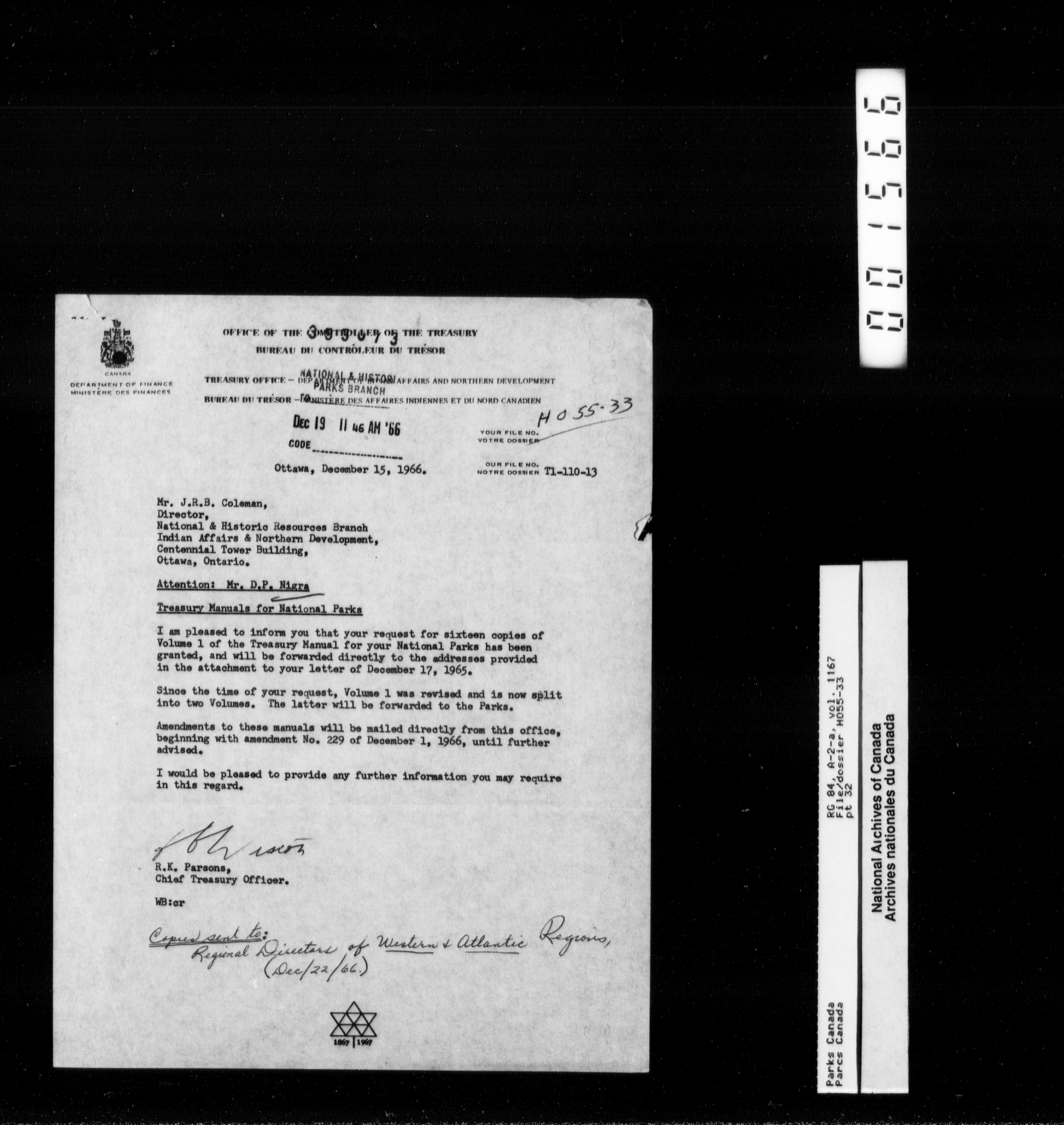 Department of Canadian Heritage, Canadian Parks Service : Park/subject classification system : T-11314