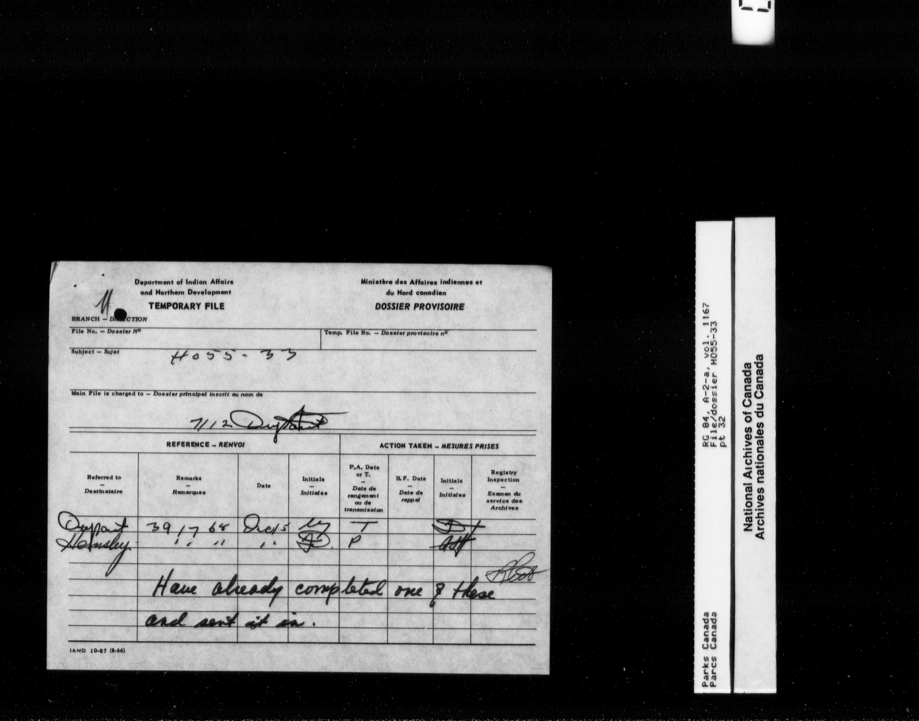 Department of Canadian Heritage, Canadian Parks Service : Park/subject classification system : T-11314