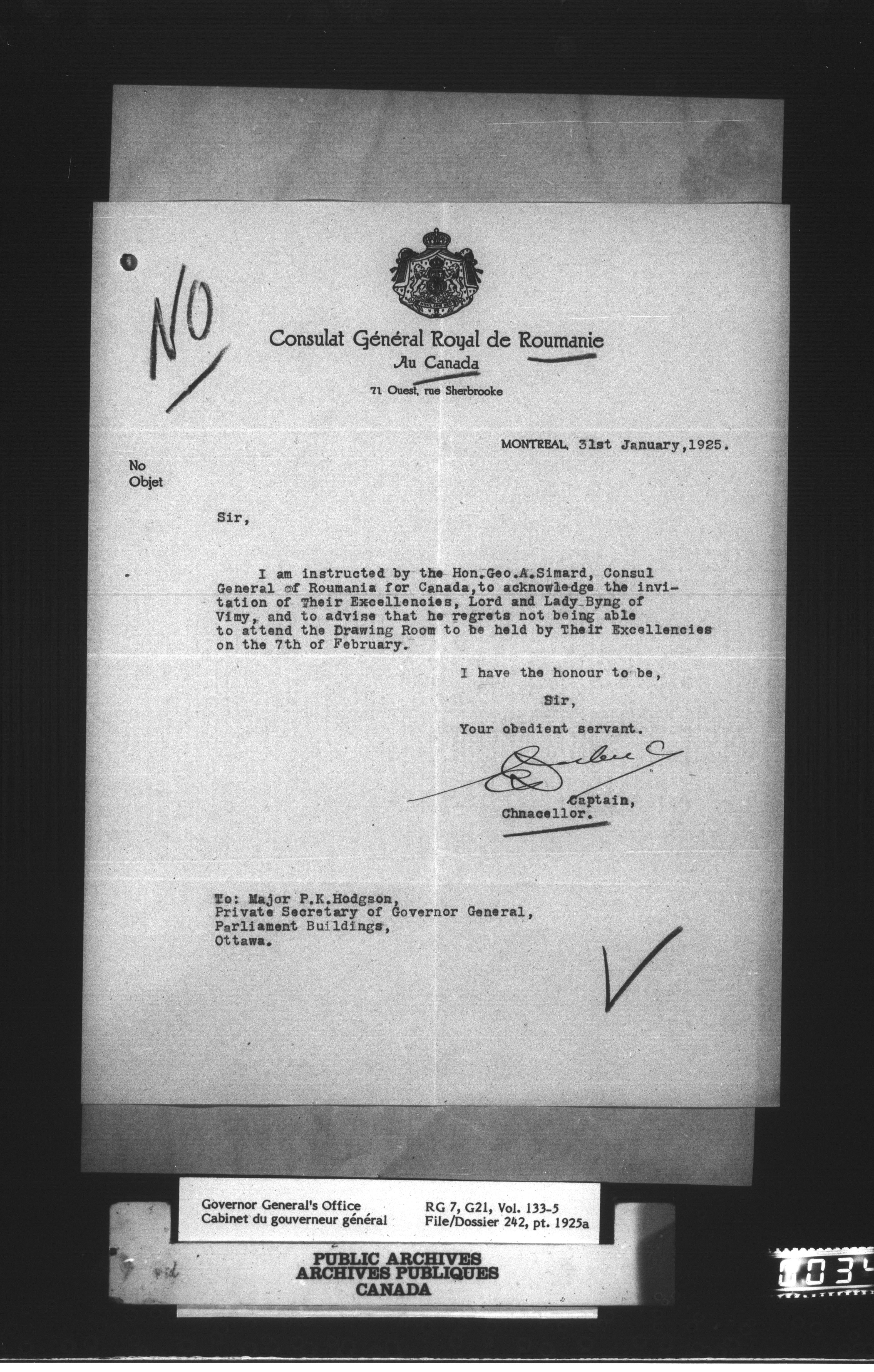 [Governor General] numbered files : T-1147