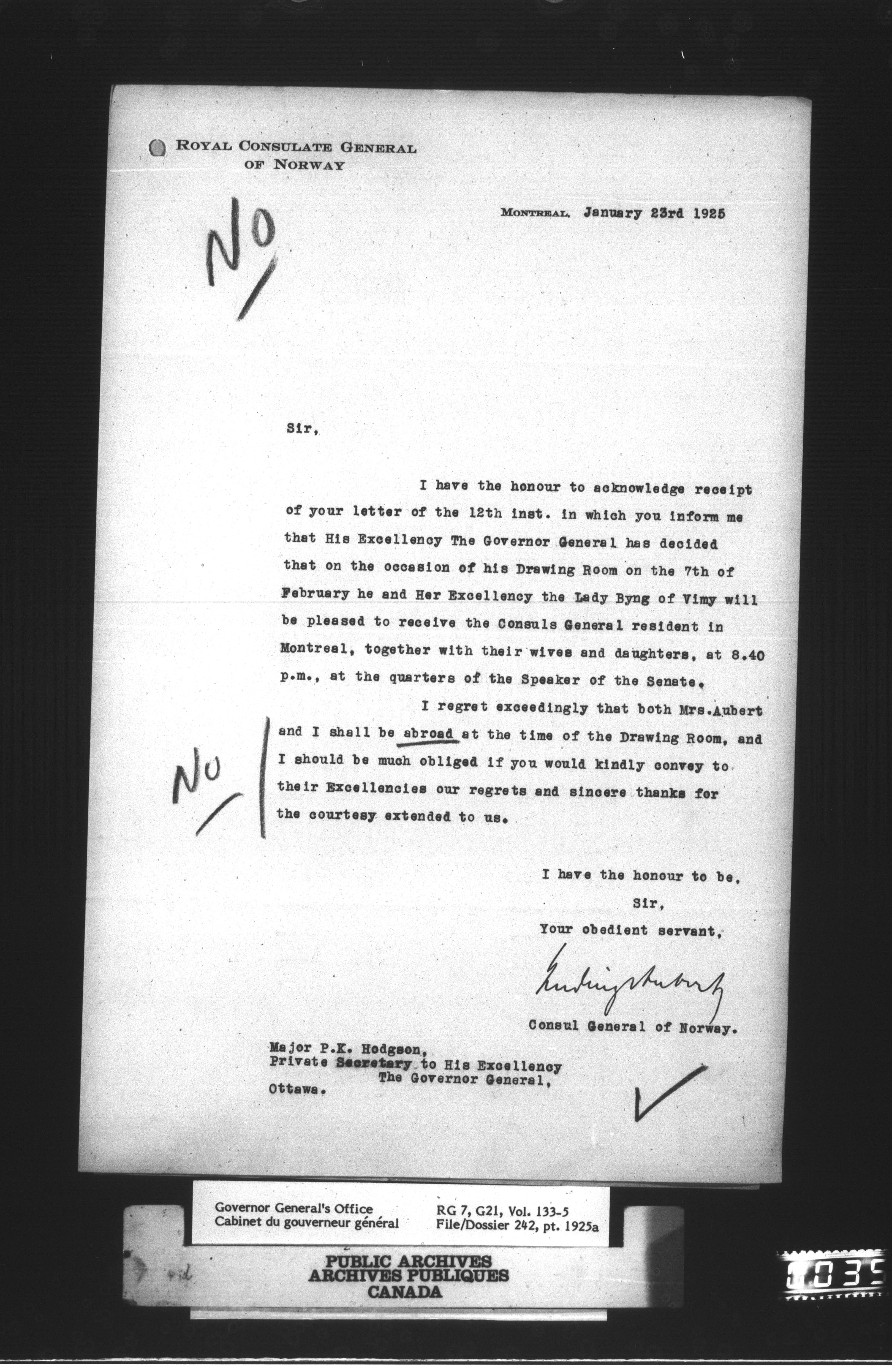 [Governor General] numbered files : T-1147