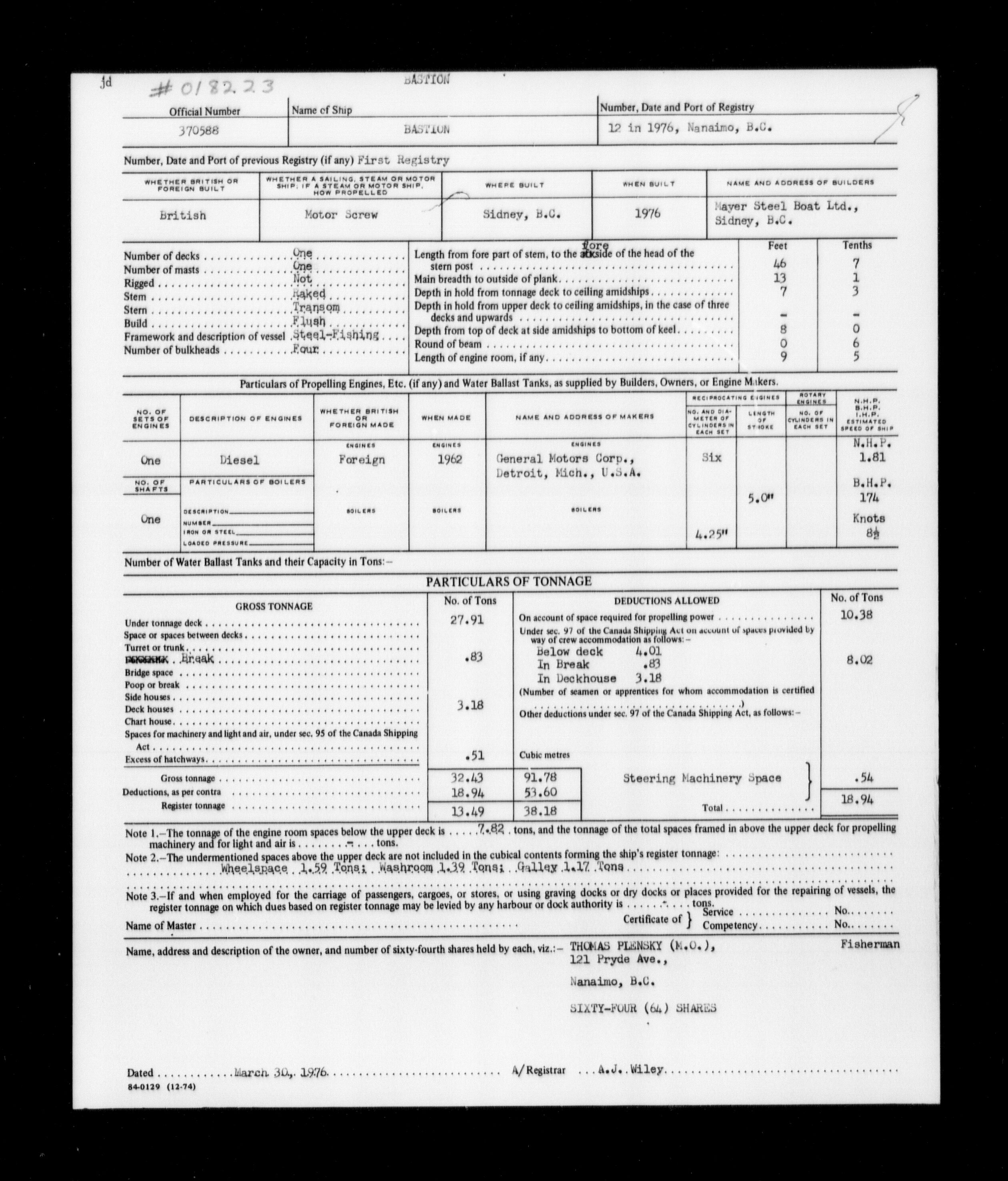 Department of Transport : Registers and ledgers cards of ships closed-out (1904-1983) - 11574