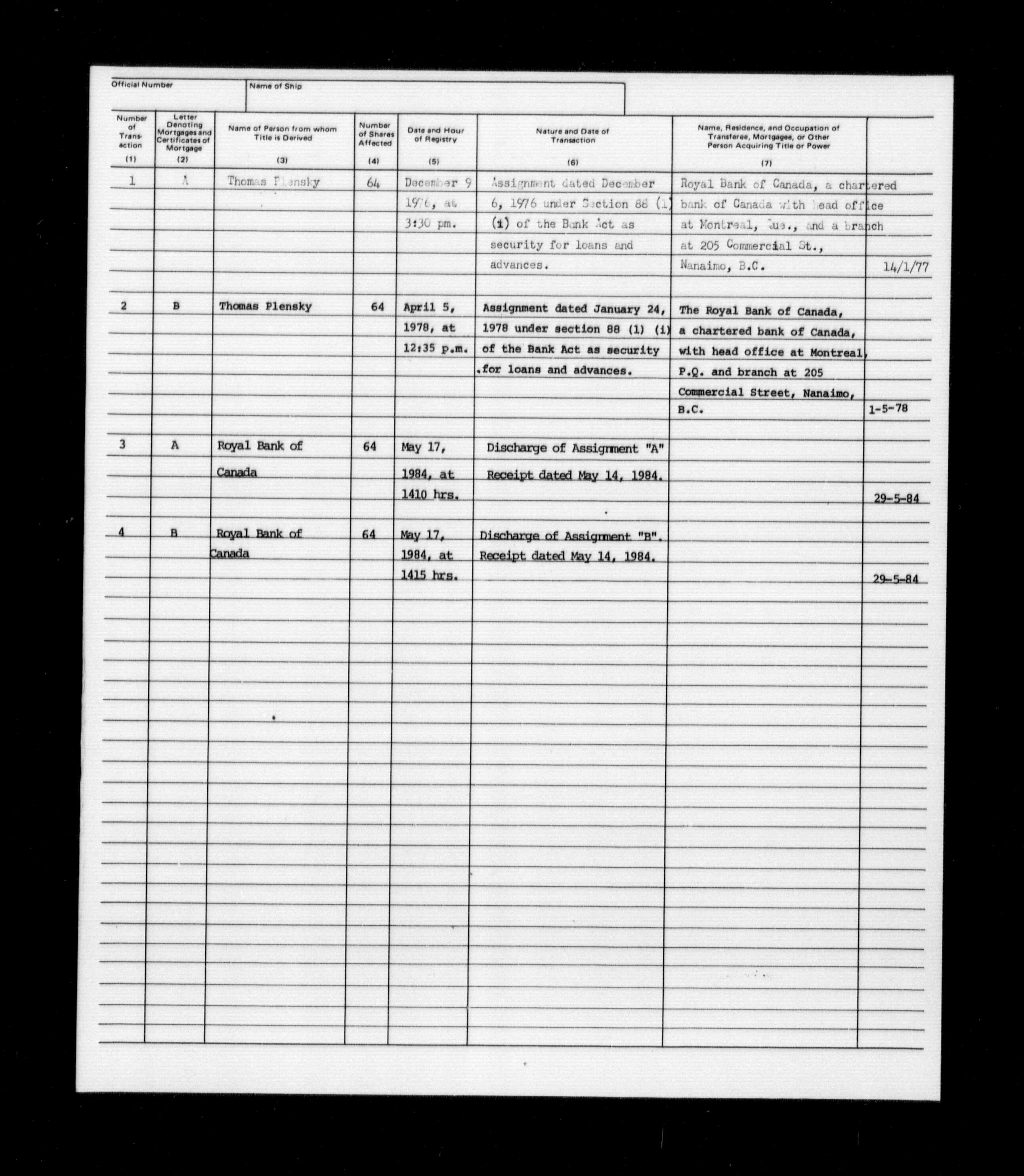 Department of Transport : Registers and ledgers cards of ships closed-out (1904-1983) - 11574