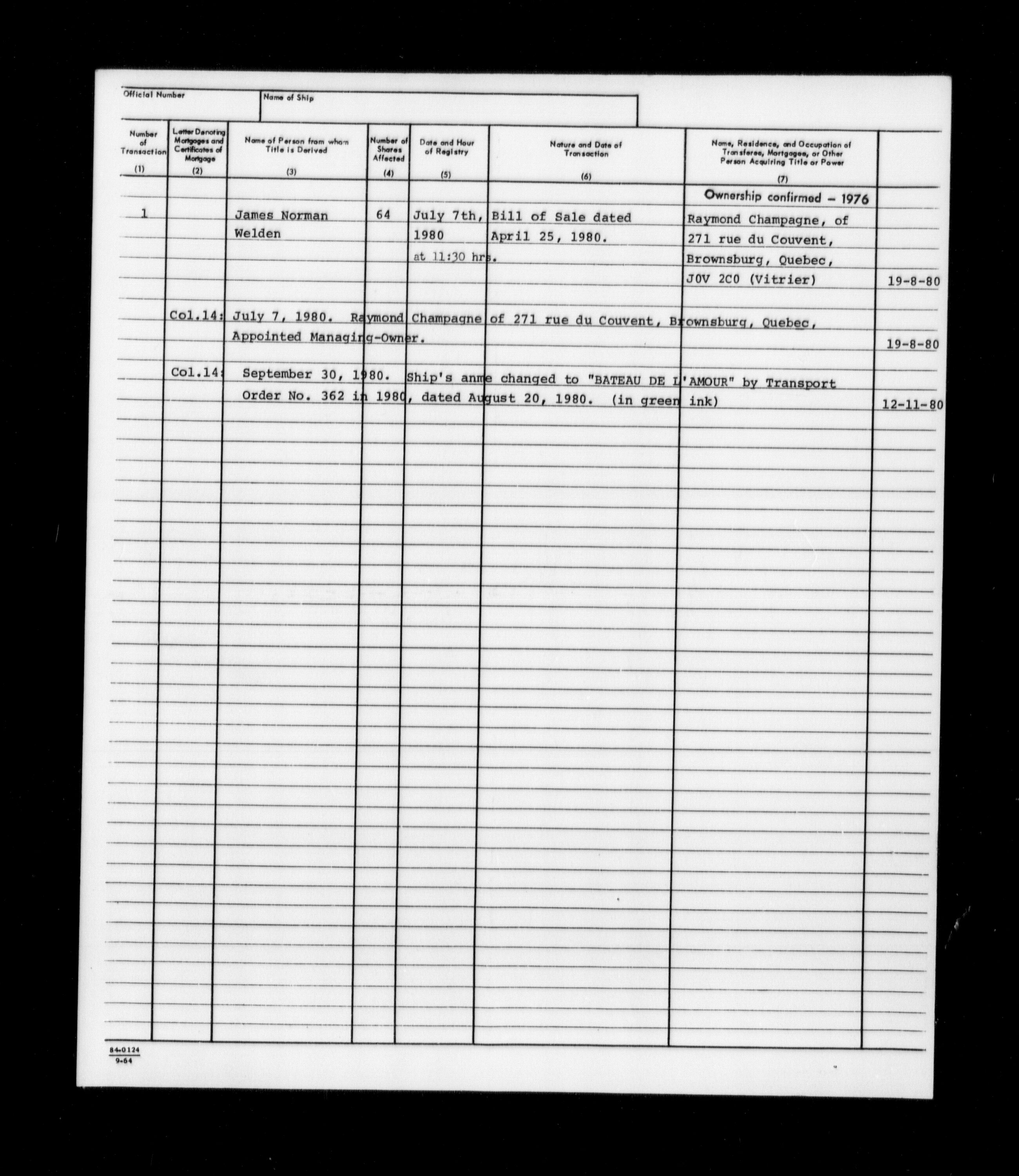 Department of Transport : Registers and ledgers cards of ships closed-out (1904-1983) - 11574