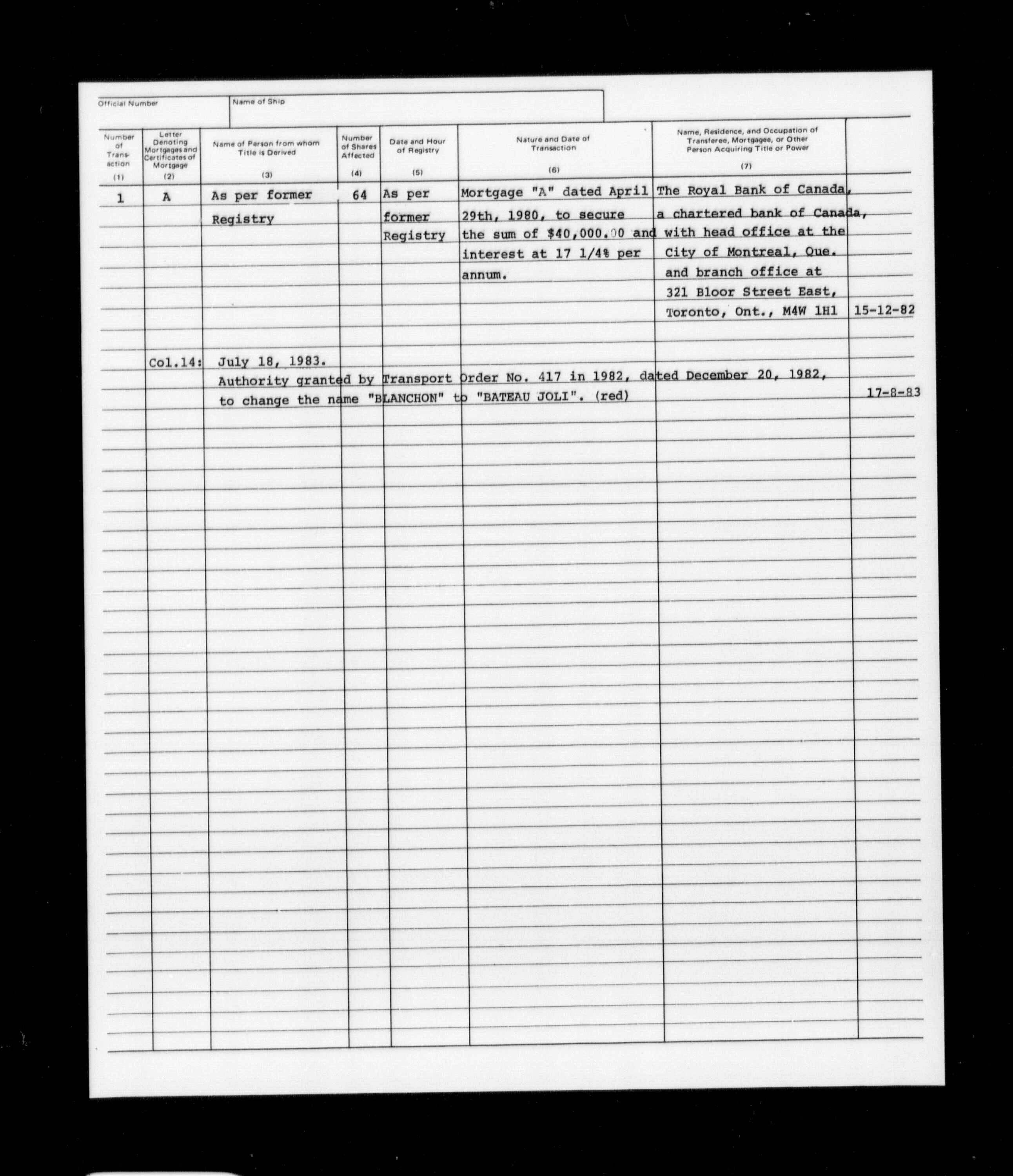 Department of Transport : Registers and ledgers cards of ships closed-out (1904-1983) - 11574