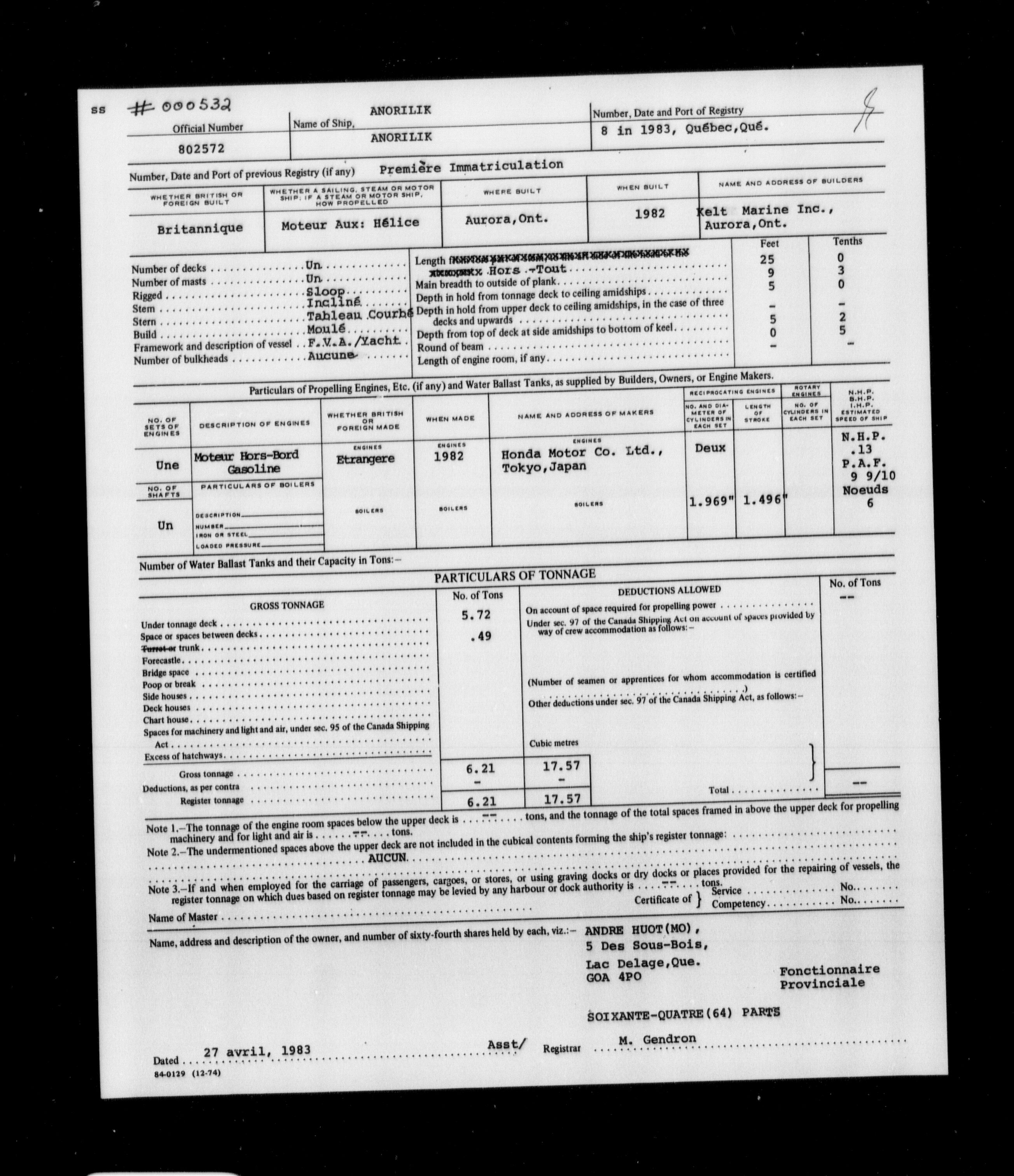 Department of Transport : Registers and ledgers cards of ships closed-out (1904-1983) - 11574