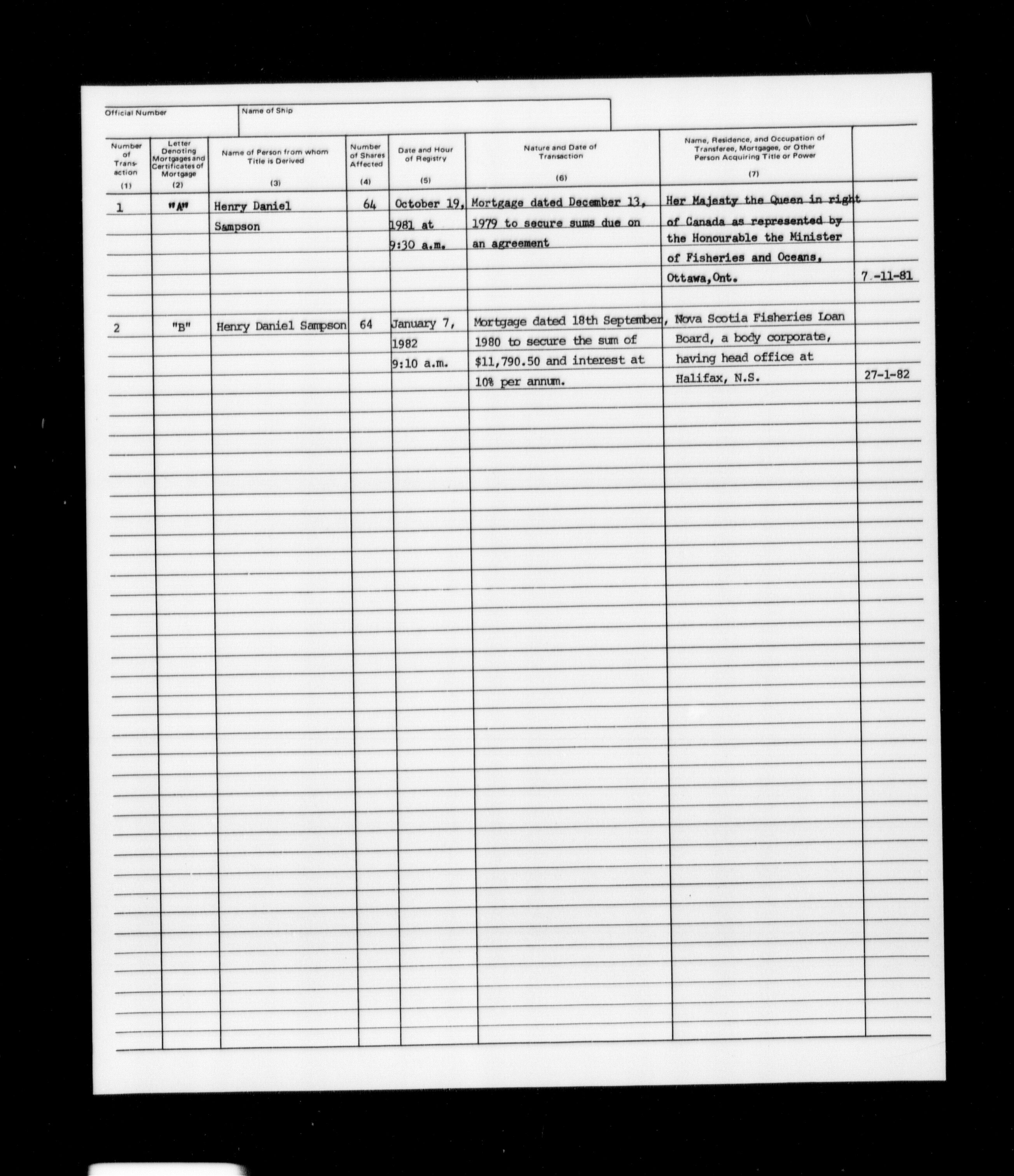 Department of Transport : Registers and ledgers cards of ships closed-out (1904-1983) - 11575