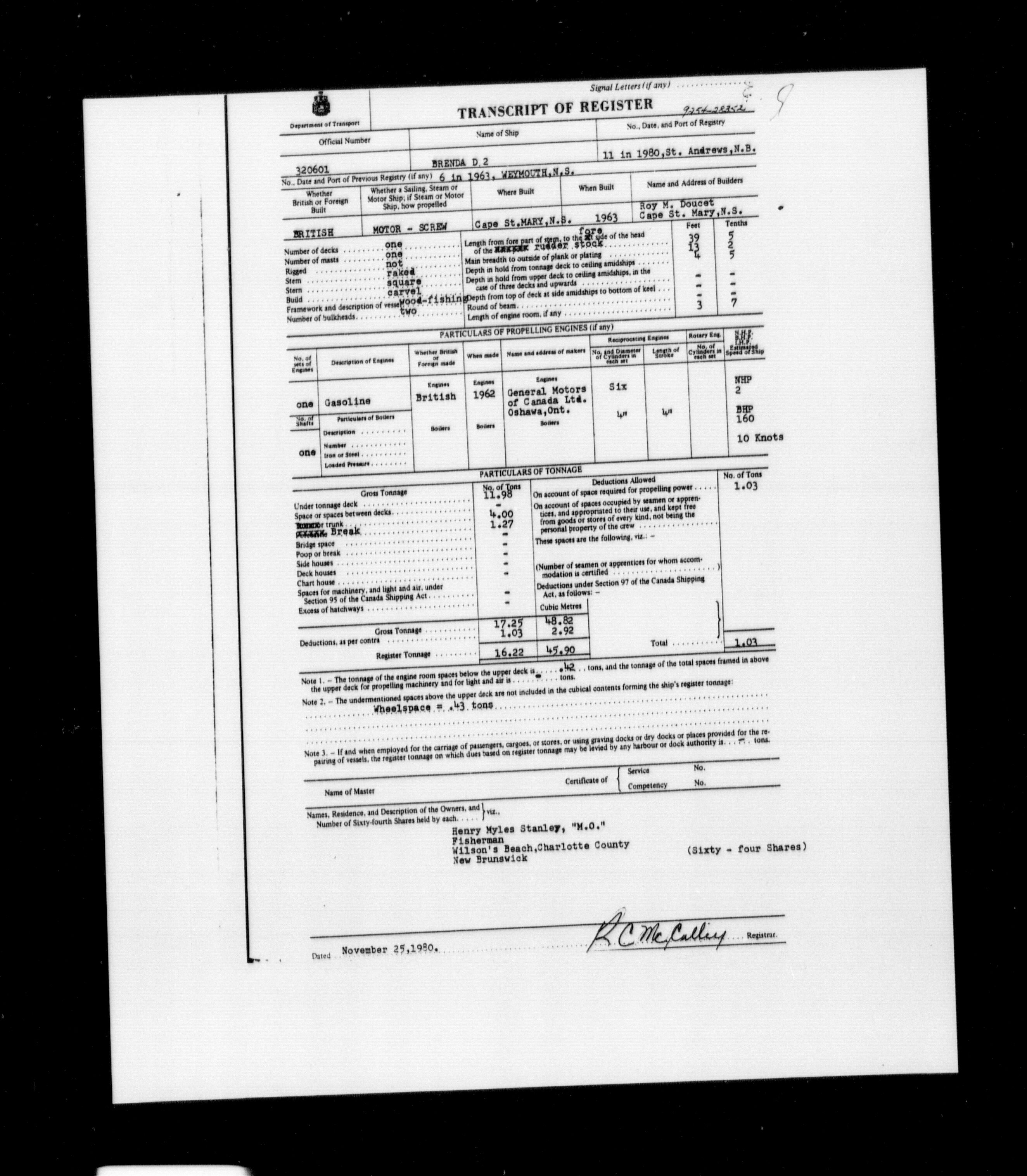 Department of Transport : Registers and ledgers cards of ships closed-out (1904-1983) - 11575