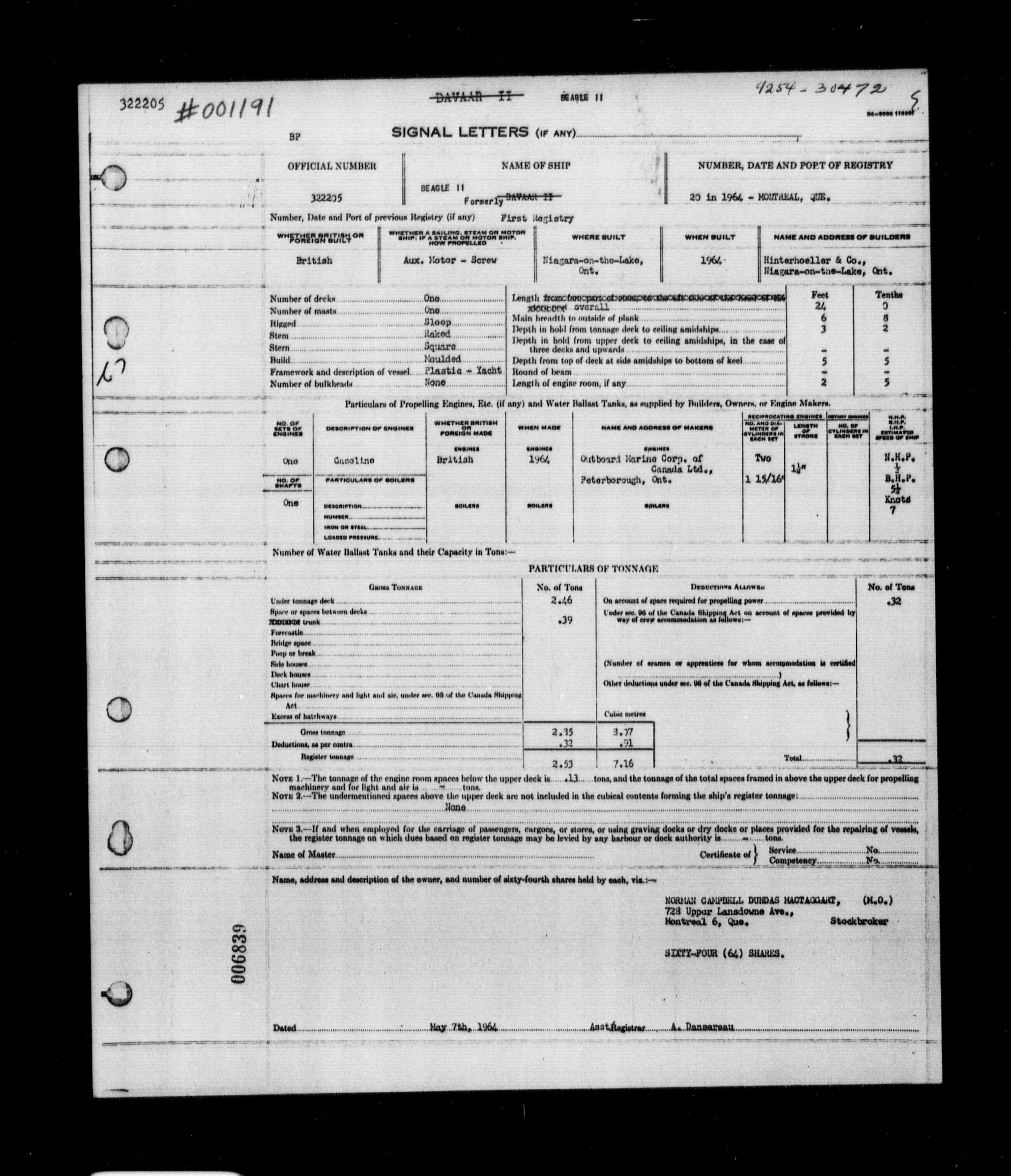 Department of Transport : Registers and ledgers cards of ships closed-out (1904-1983) - 11575