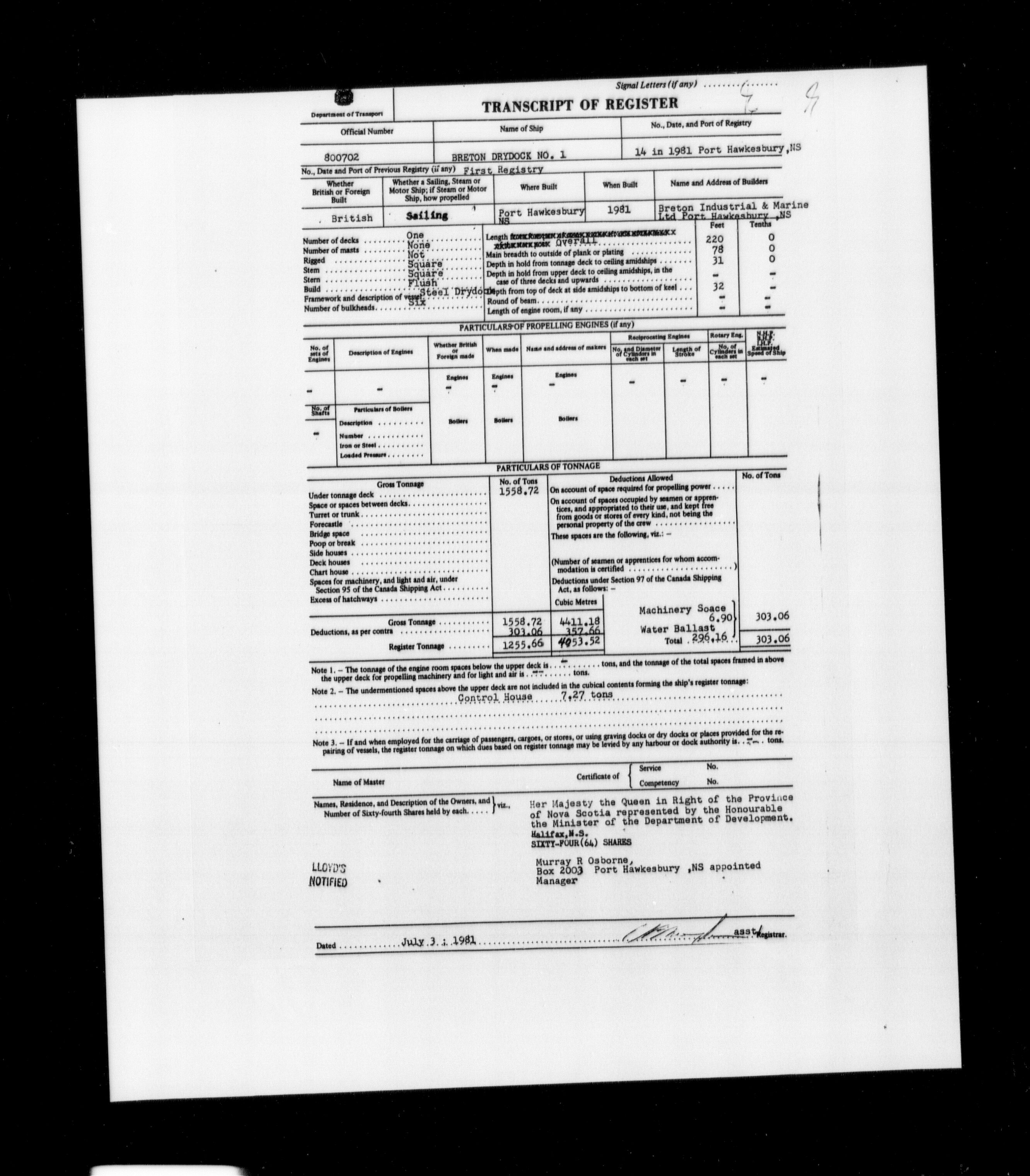 Department of Transport : Registers and ledgers cards of ships closed-out (1904-1983) - 11576