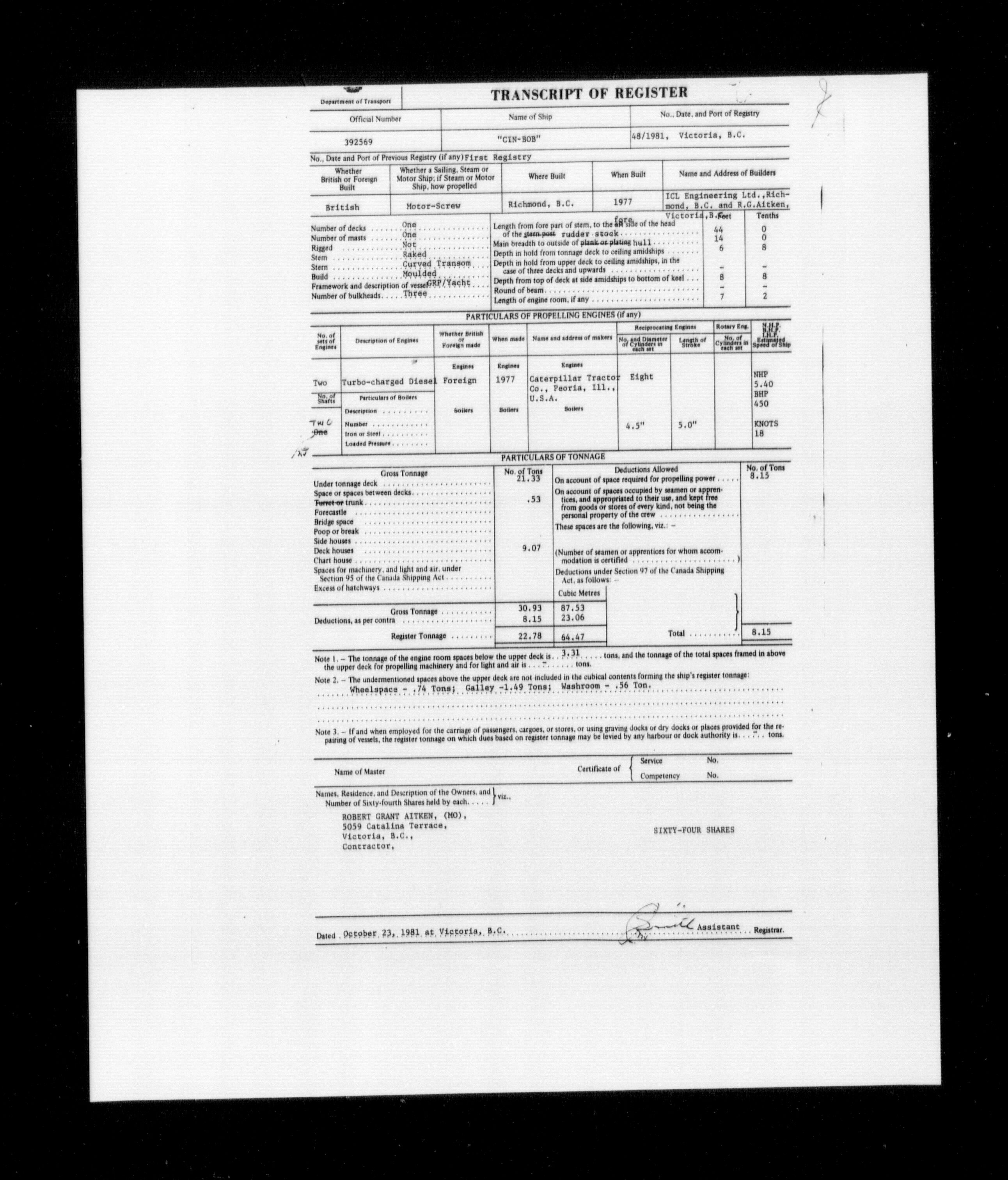 Department of Transport : Registers and ledgers cards of ships closed-out (1904-1983) - 11577