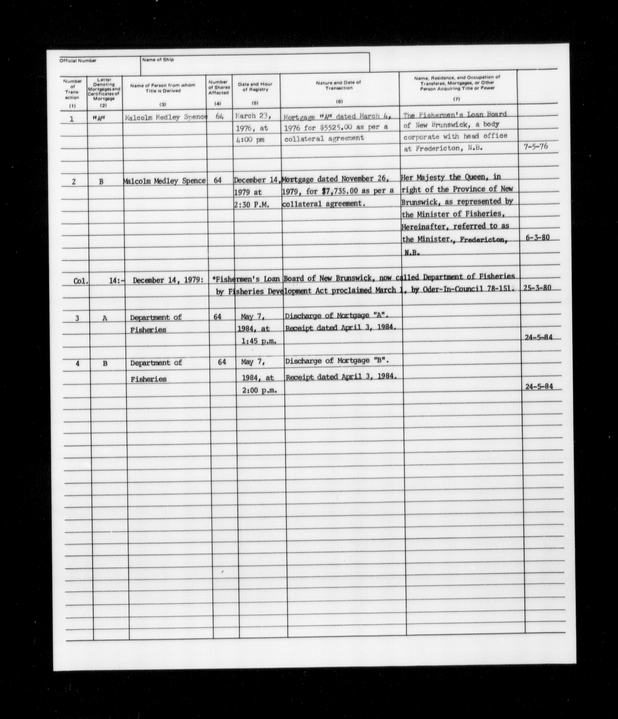 Department of Transport : Registers and ledgers cards of ships closed-out (1904-1983) - 11577