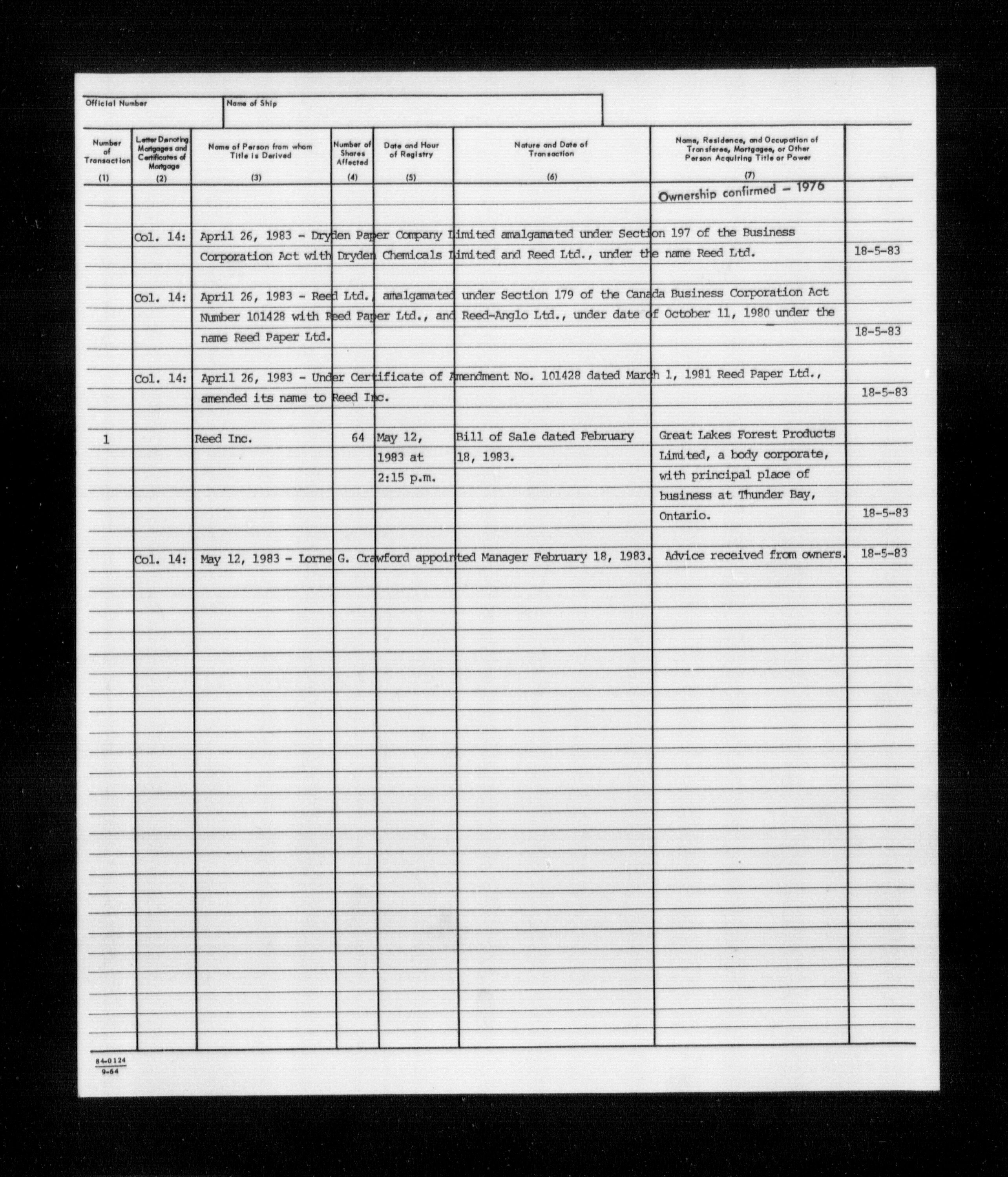 Department of Transport : Registers and ledgers cards of ships closed-out (1904-1983) - 11580