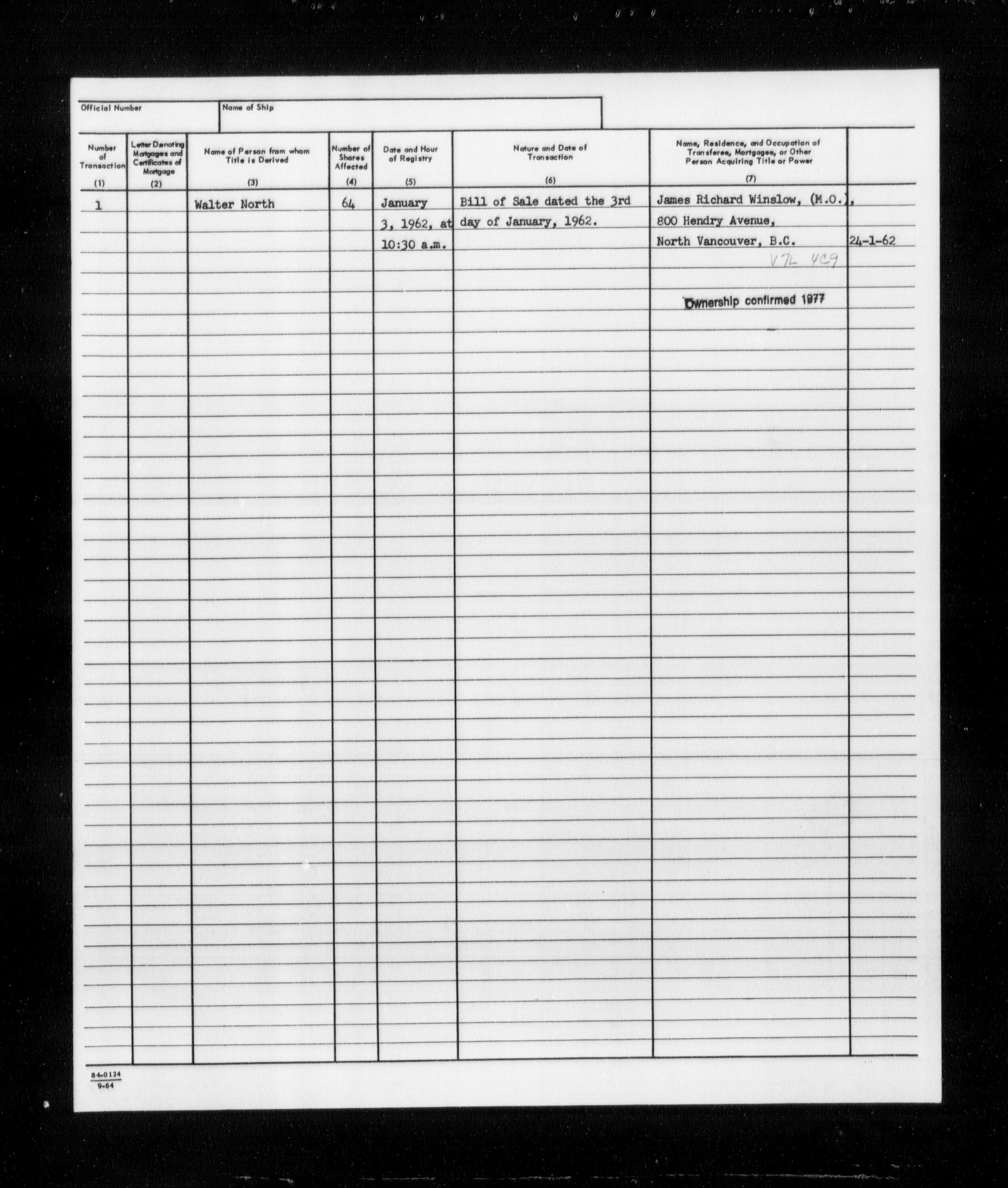 Department of Transport : Registers and ledgers cards of ships closed-out (1904-1983) - 11580