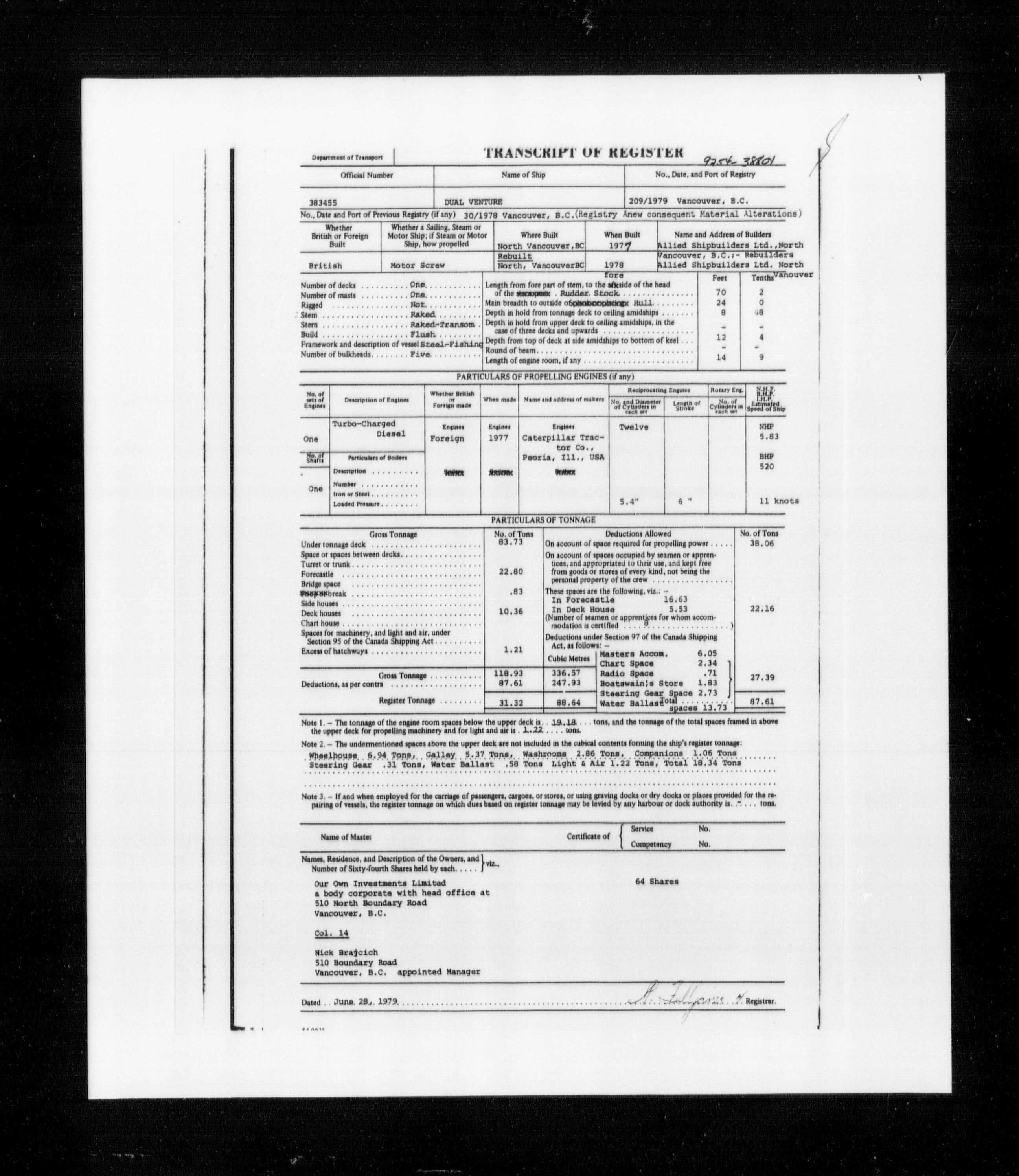 Department of Transport : Registers and ledgers cards of ships closed-out (1904-1983) - 11580