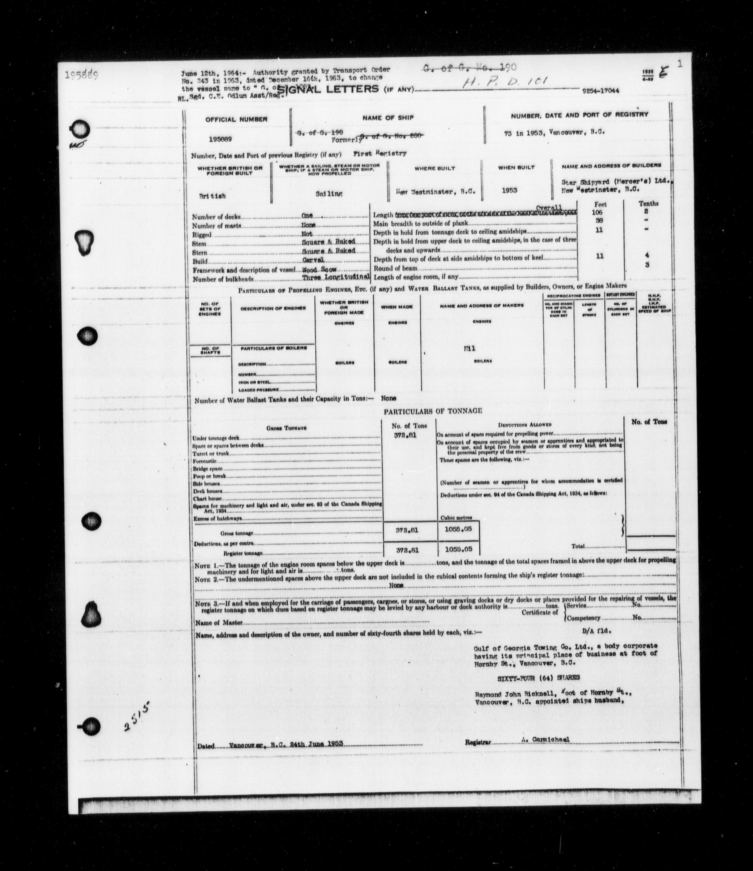 Department of Transport : Registers and ledgers cards of ships closed-out (1904-1983) - 11583