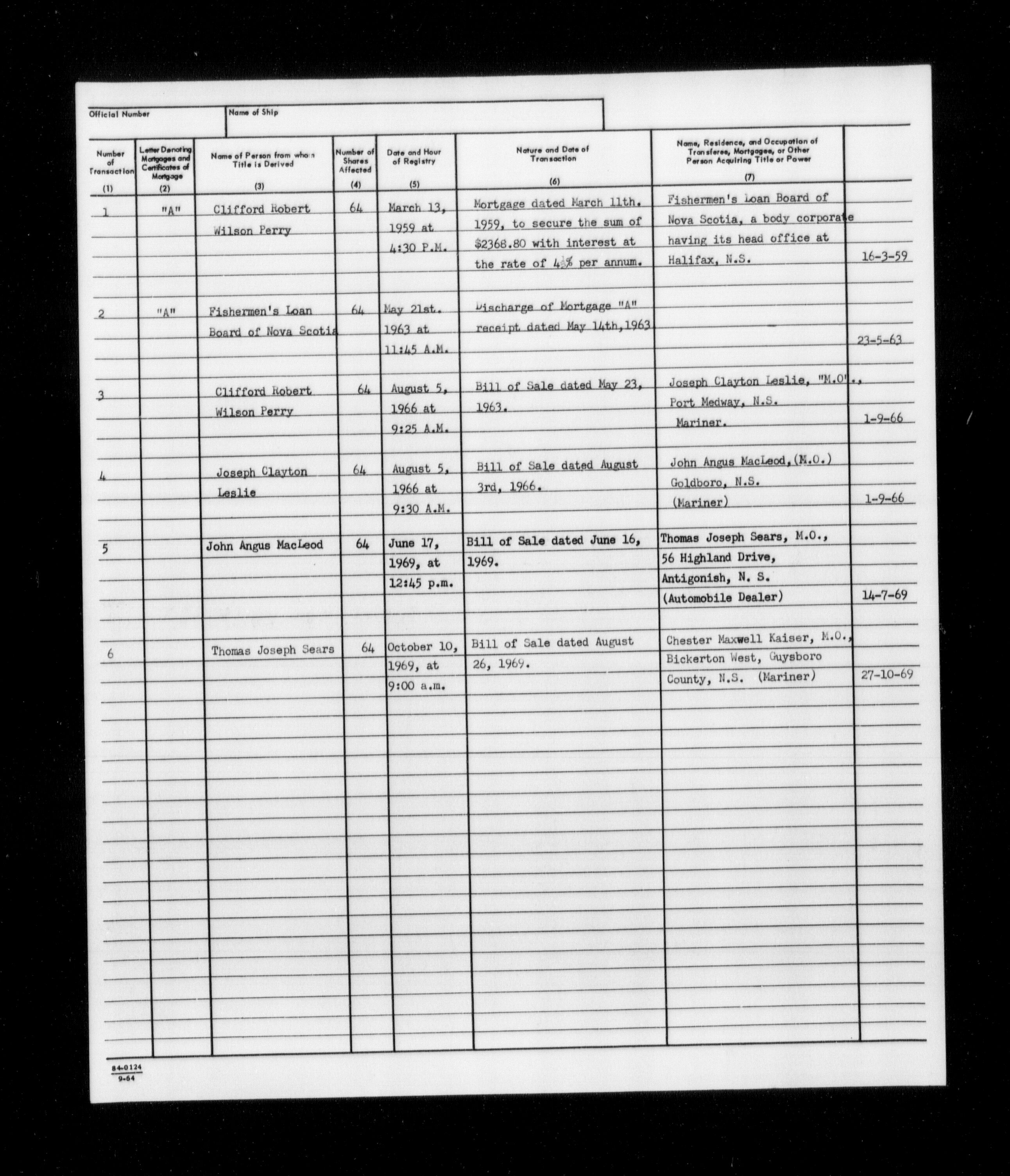 Department of Transport : Registers and ledgers cards of ships closed-out (1904-1983) - 11584