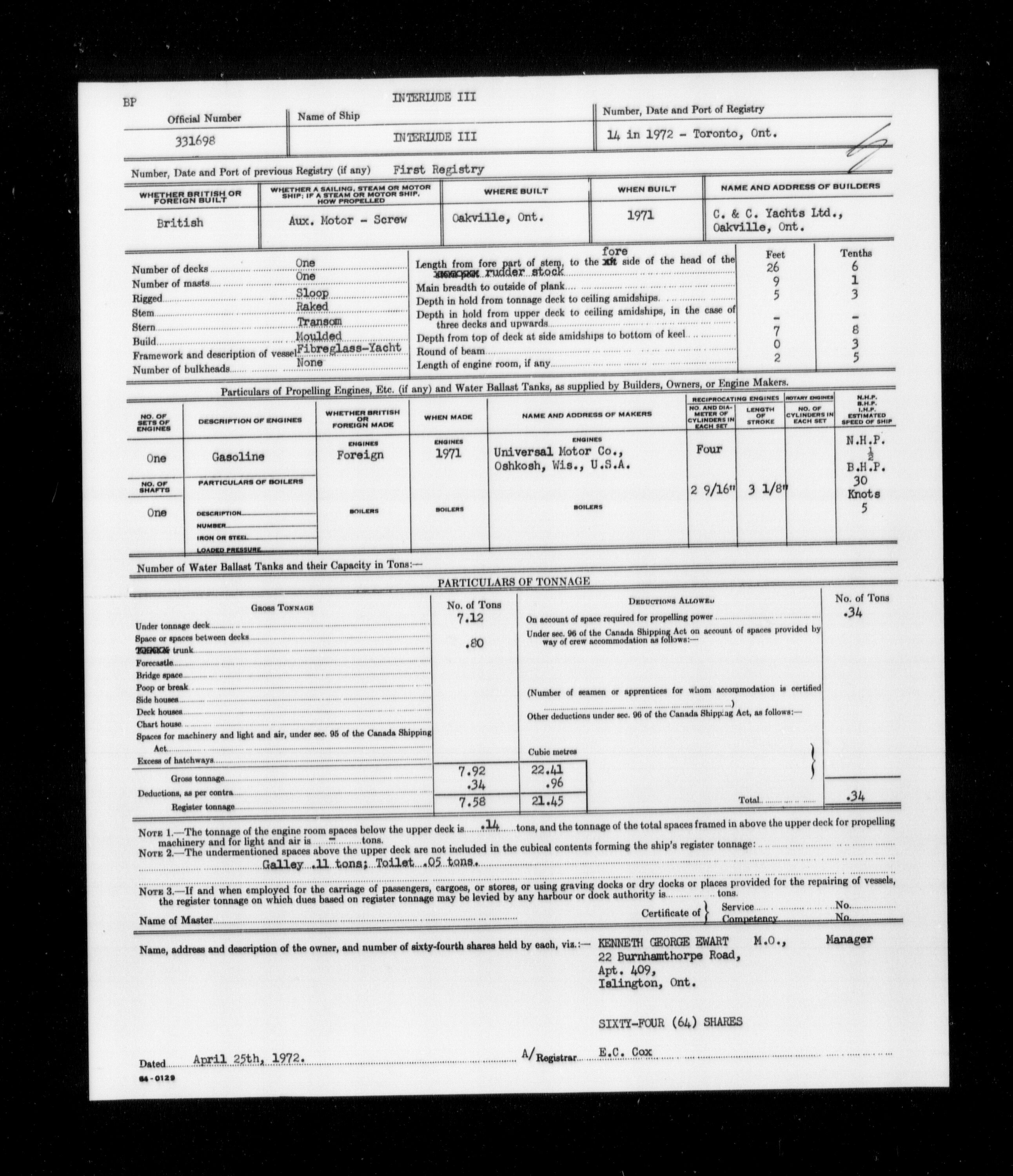 Department of Transport : Registers and ledgers cards of ships closed-out (1904-1983) - 11584