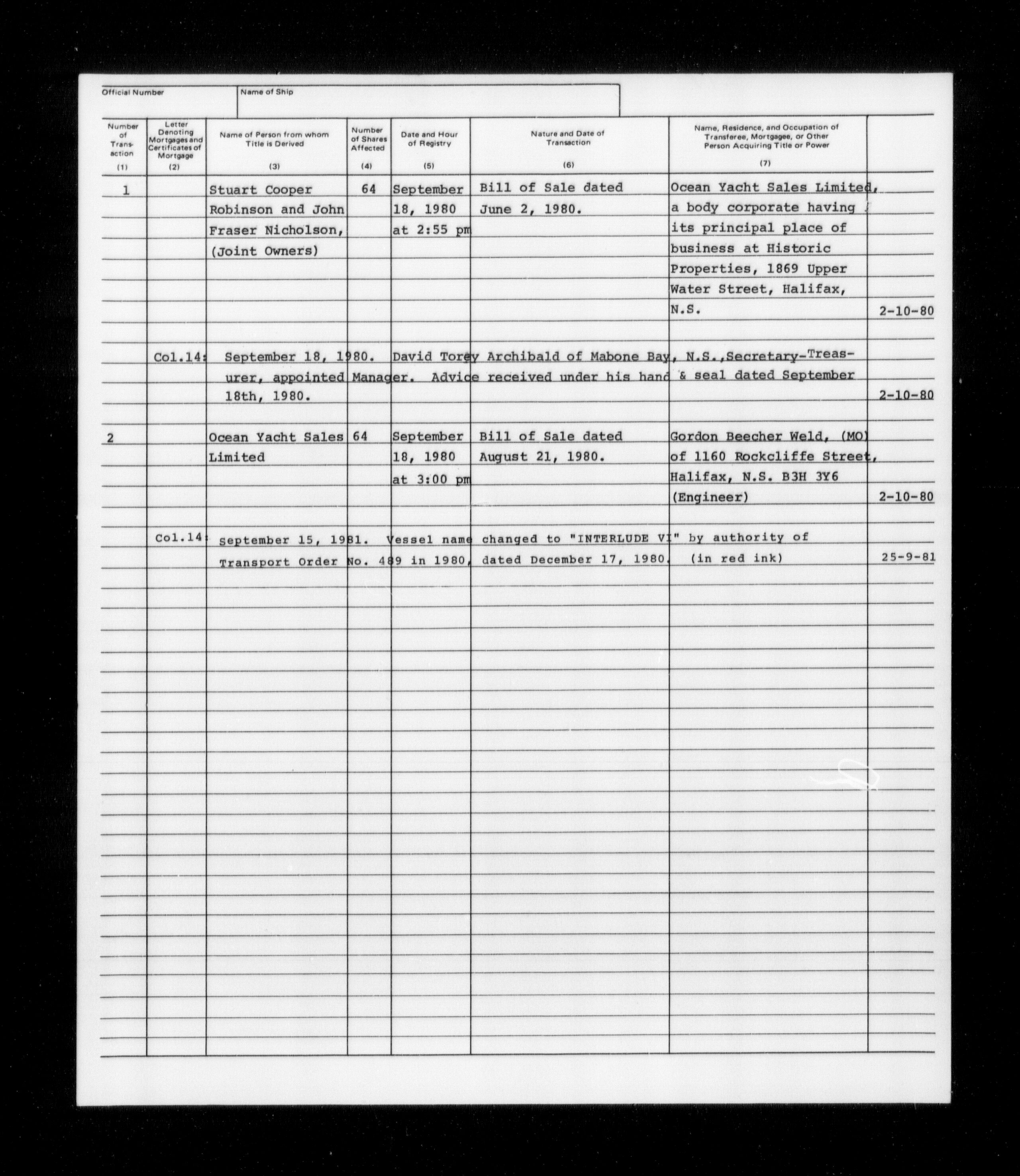 Department of Transport : Registers and ledgers cards of ships closed-out (1904-1983) - 11584