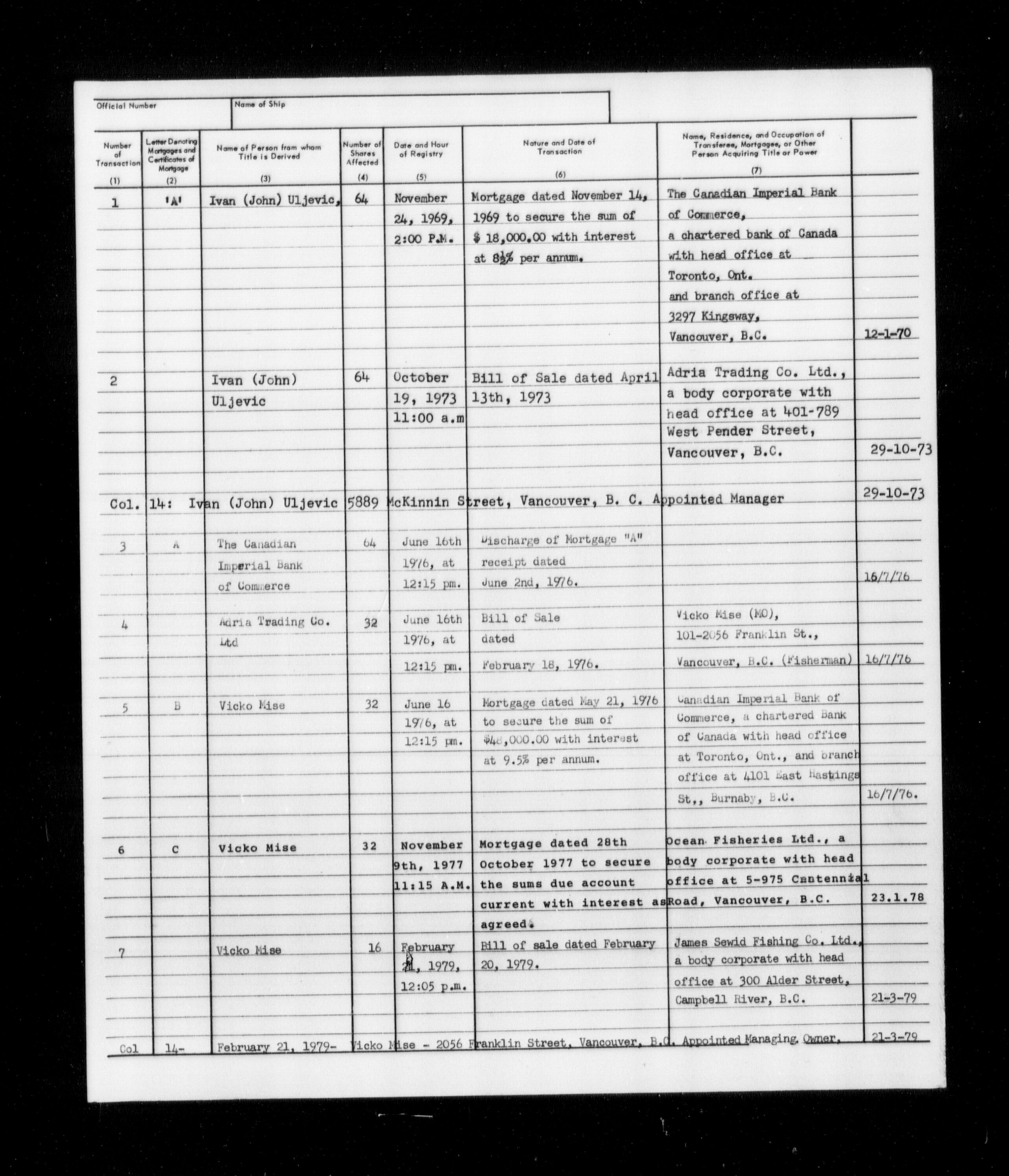 Department of Transport : Registers and ledgers cards of ships closed-out (1904-1983) - 11584