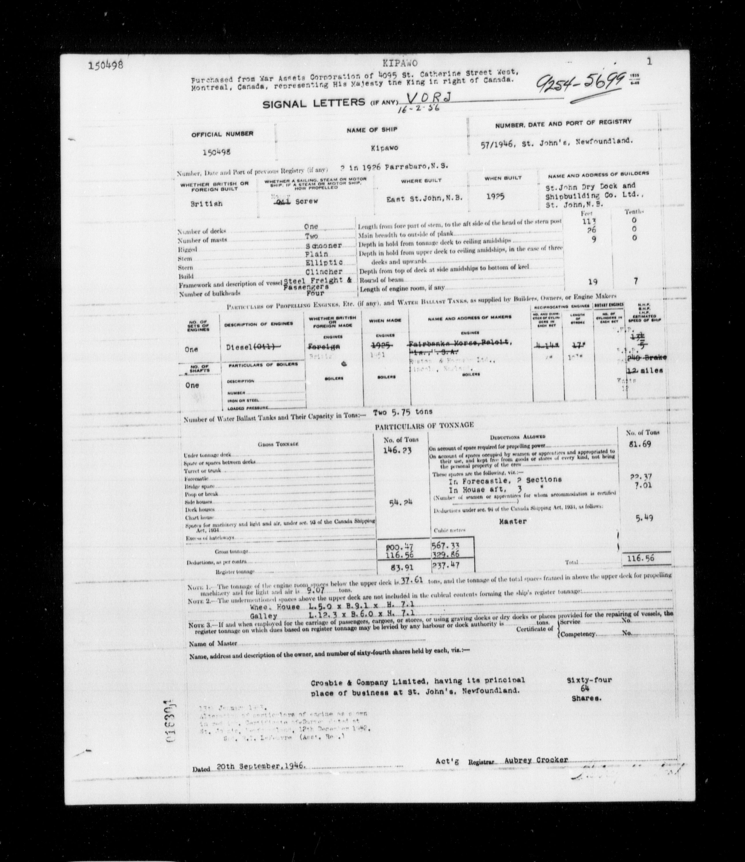 Department of Transport : Registers and ledgers cards of ships closed-out (1904-1983) - 11586