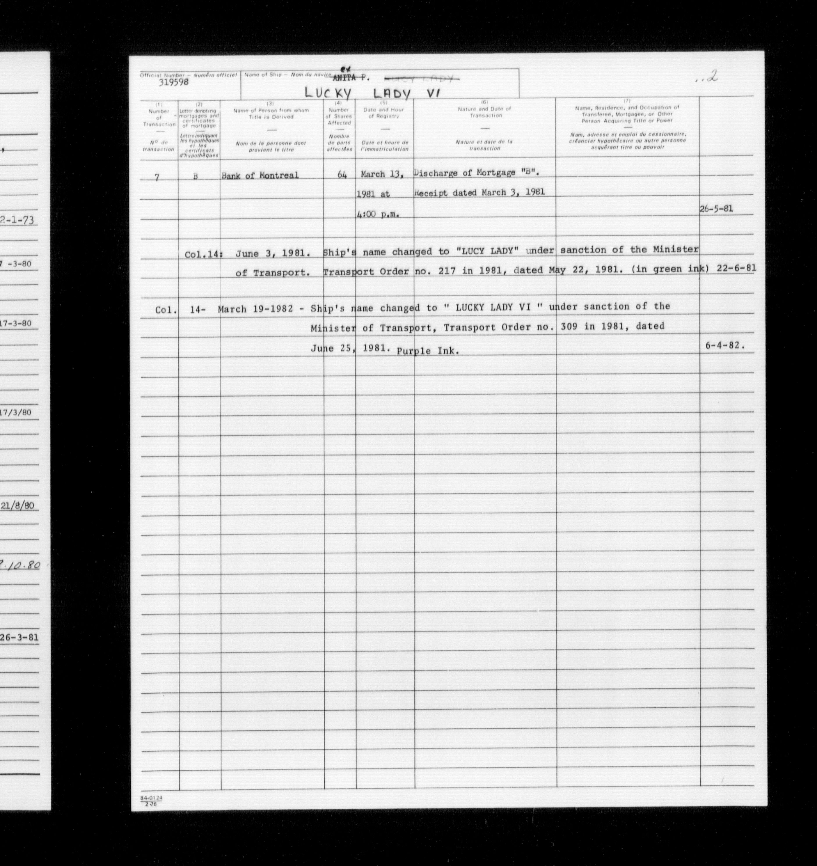 Department of Transport : Registers and ledgers cards of ships closed-out (1904-1983) - 11587