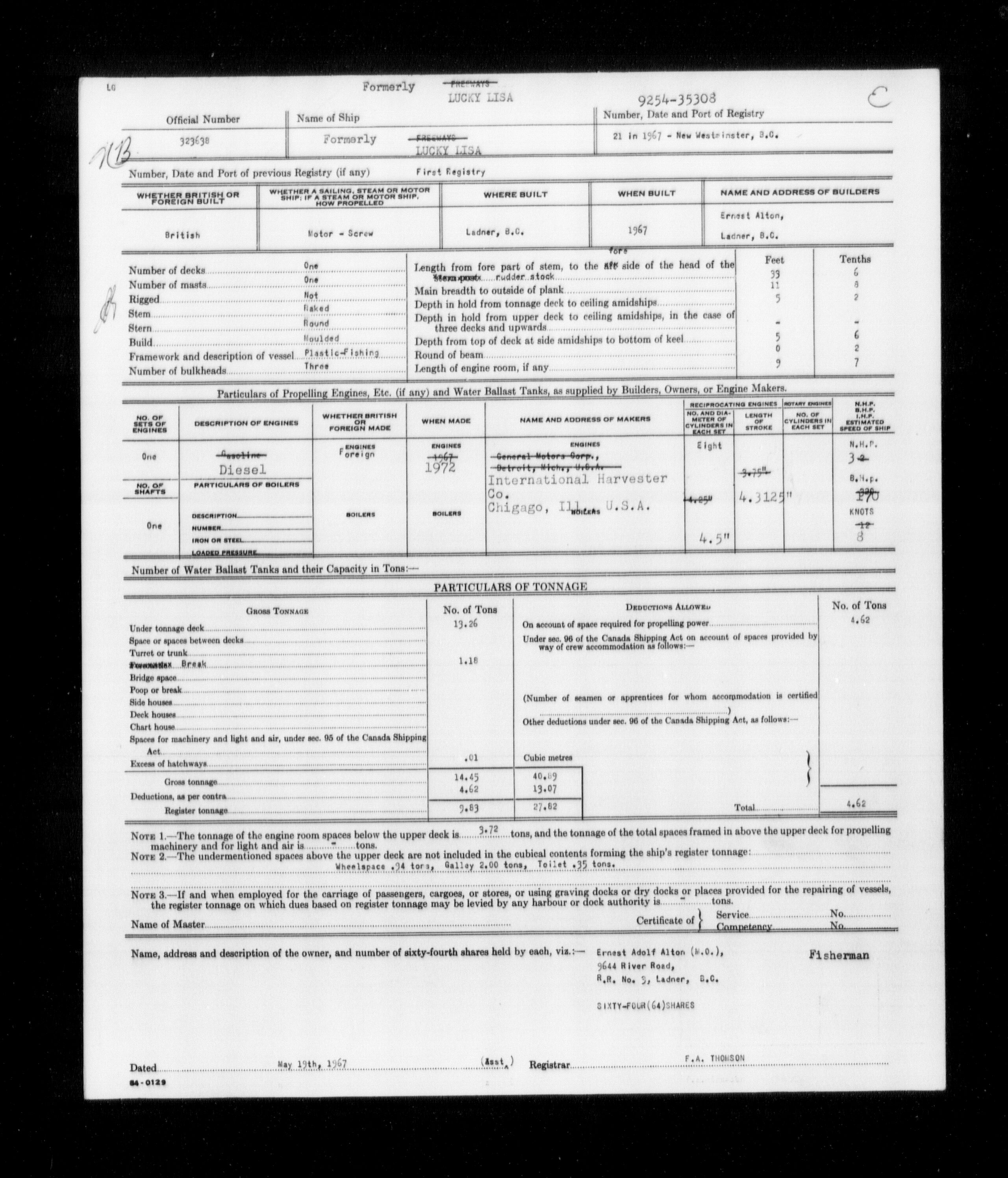 Department of Transport : Registers and ledgers cards of ships closed-out (1904-1983) - 11587