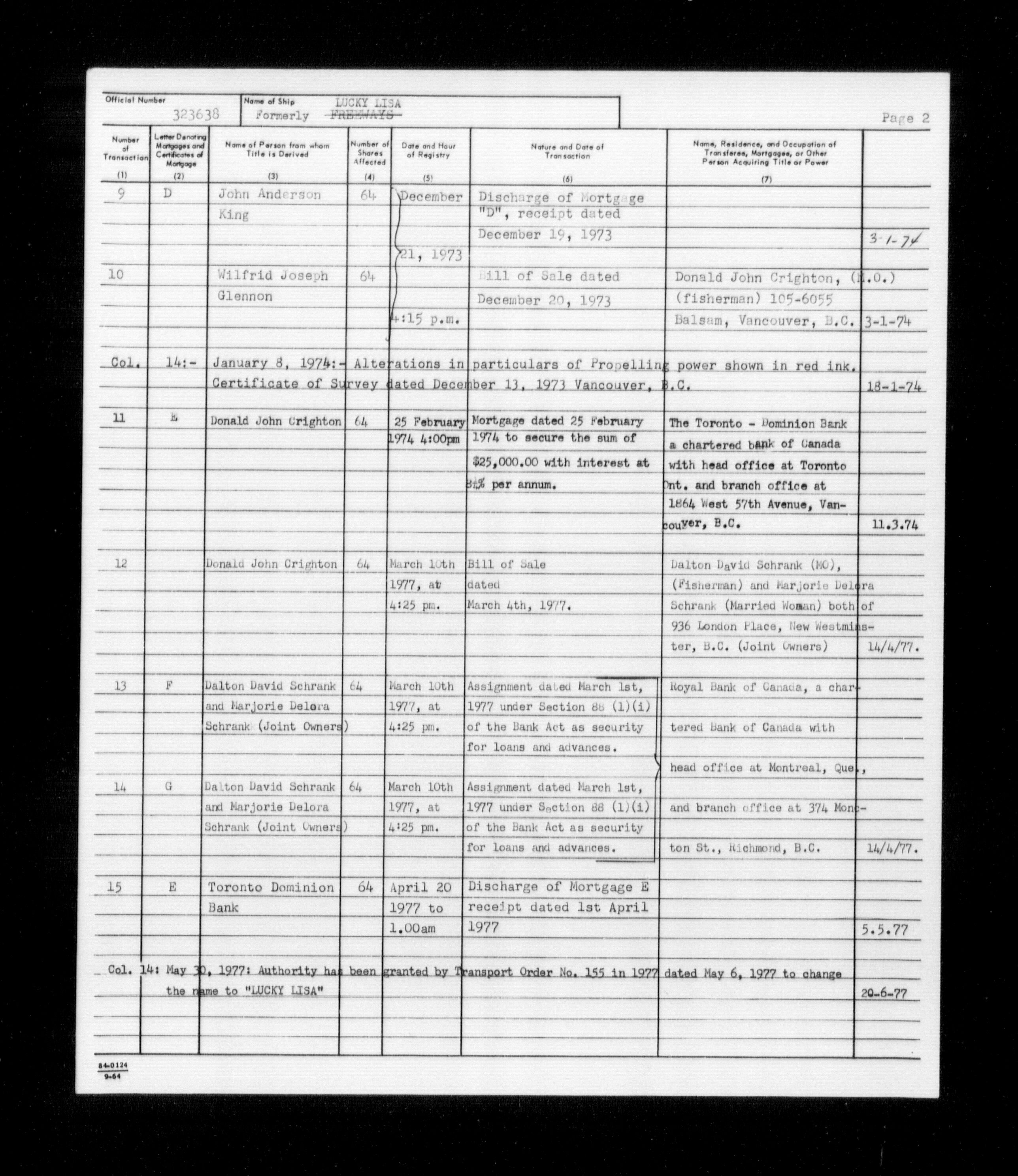 Department of Transport : Registers and ledgers cards of ships closed-out (1904-1983) - 11587