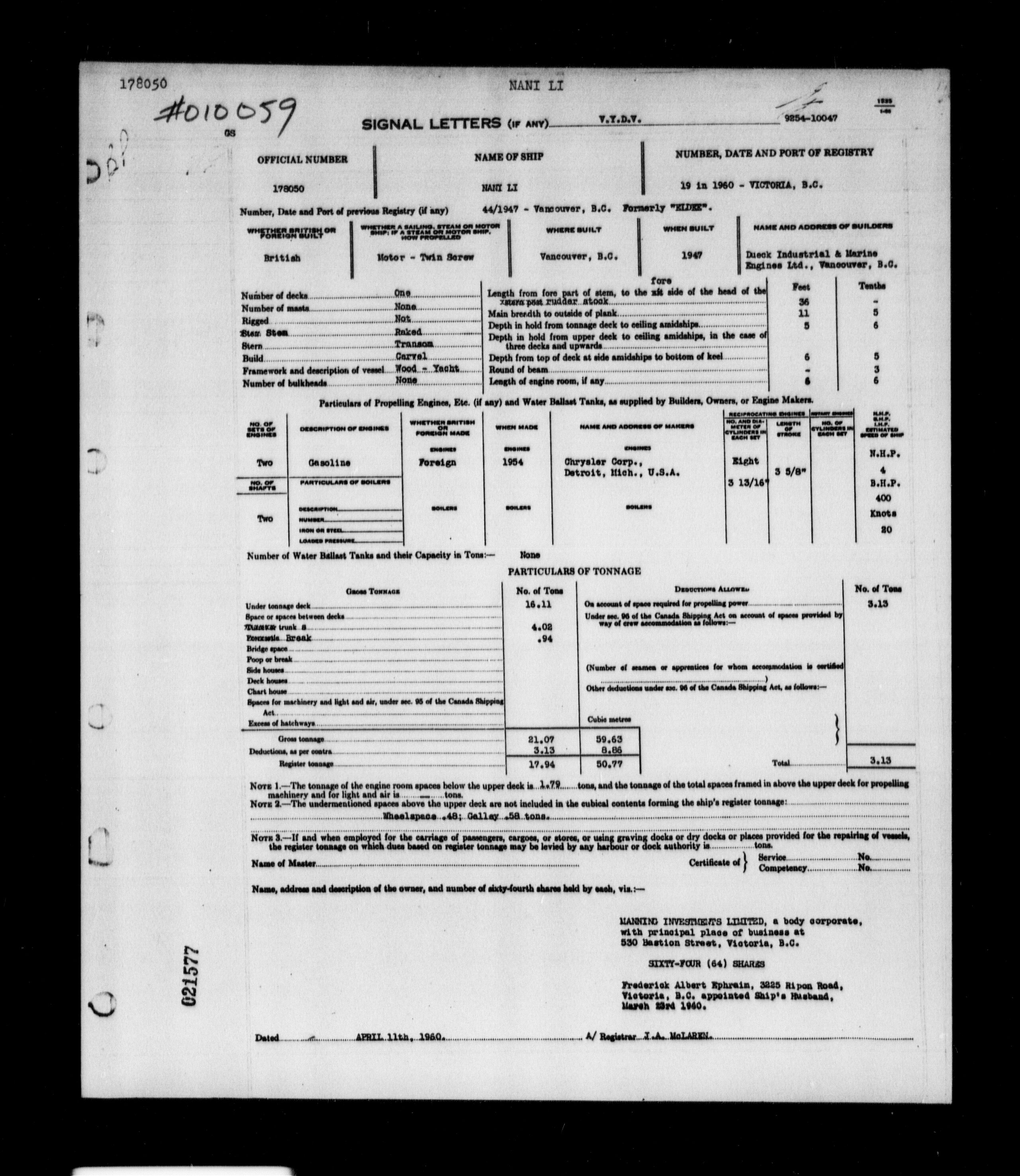 Department of Transport : Registers and ledgers cards of ships closed-out (1904-1983) - 11590