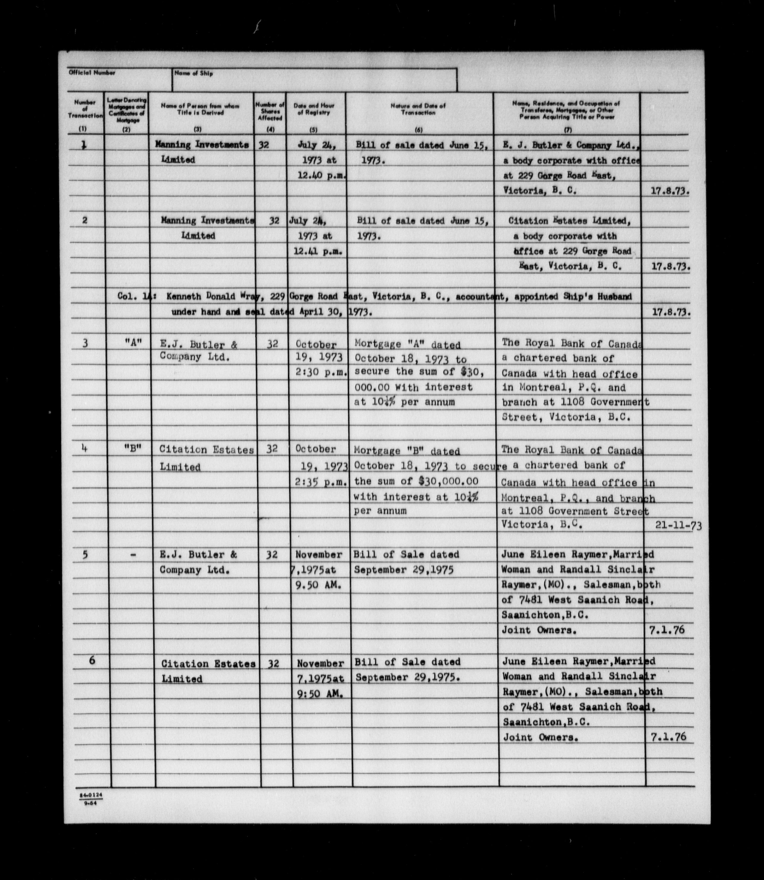 Department of Transport : Registers and ledgers cards of ships closed-out : T-11590