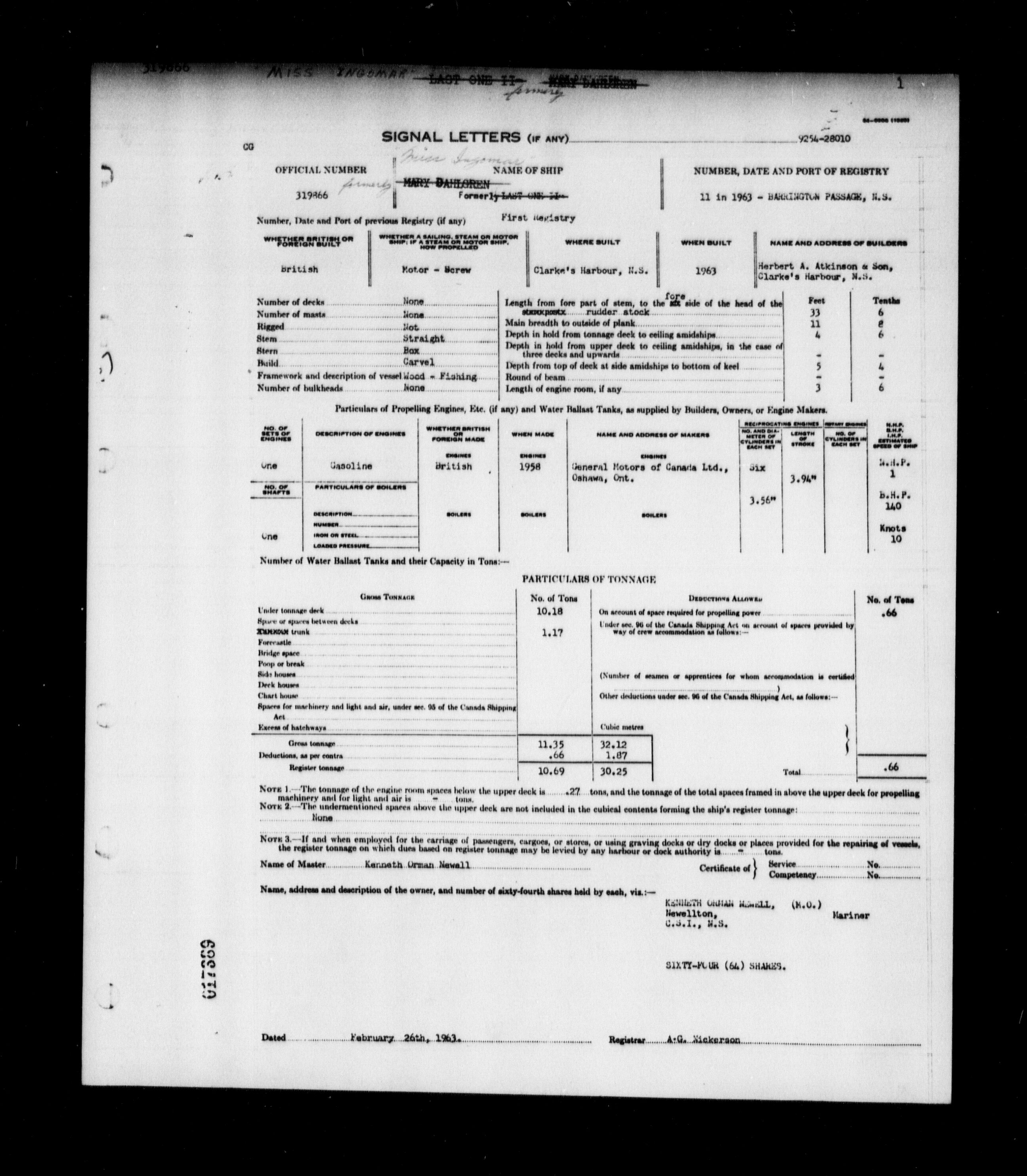 Department of Transport : Registers and ledgers cards of ships closed-out : T-11590
