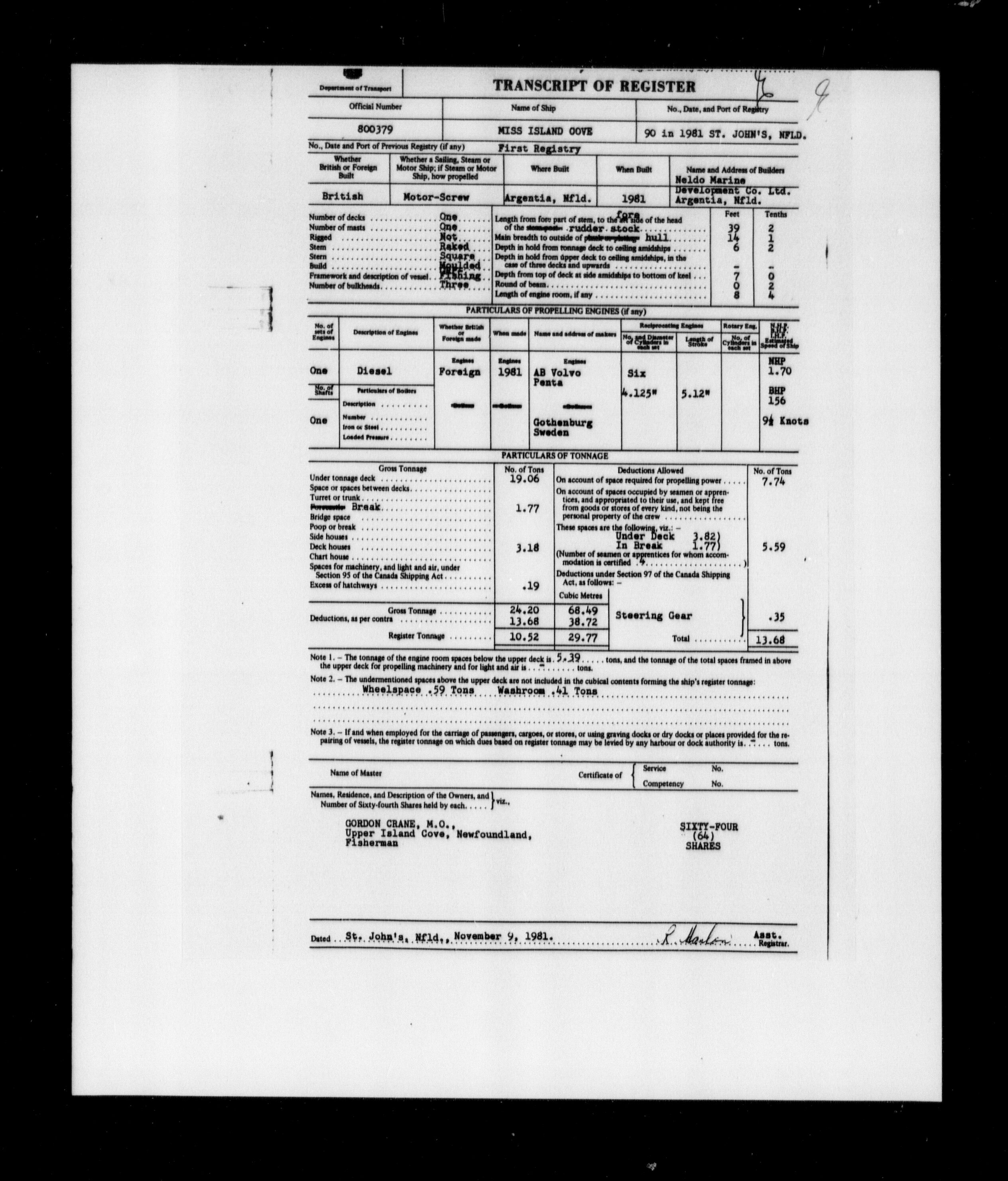 Department of Transport : Registers and ledgers cards of ships closed-out (1904-1983) - 11590