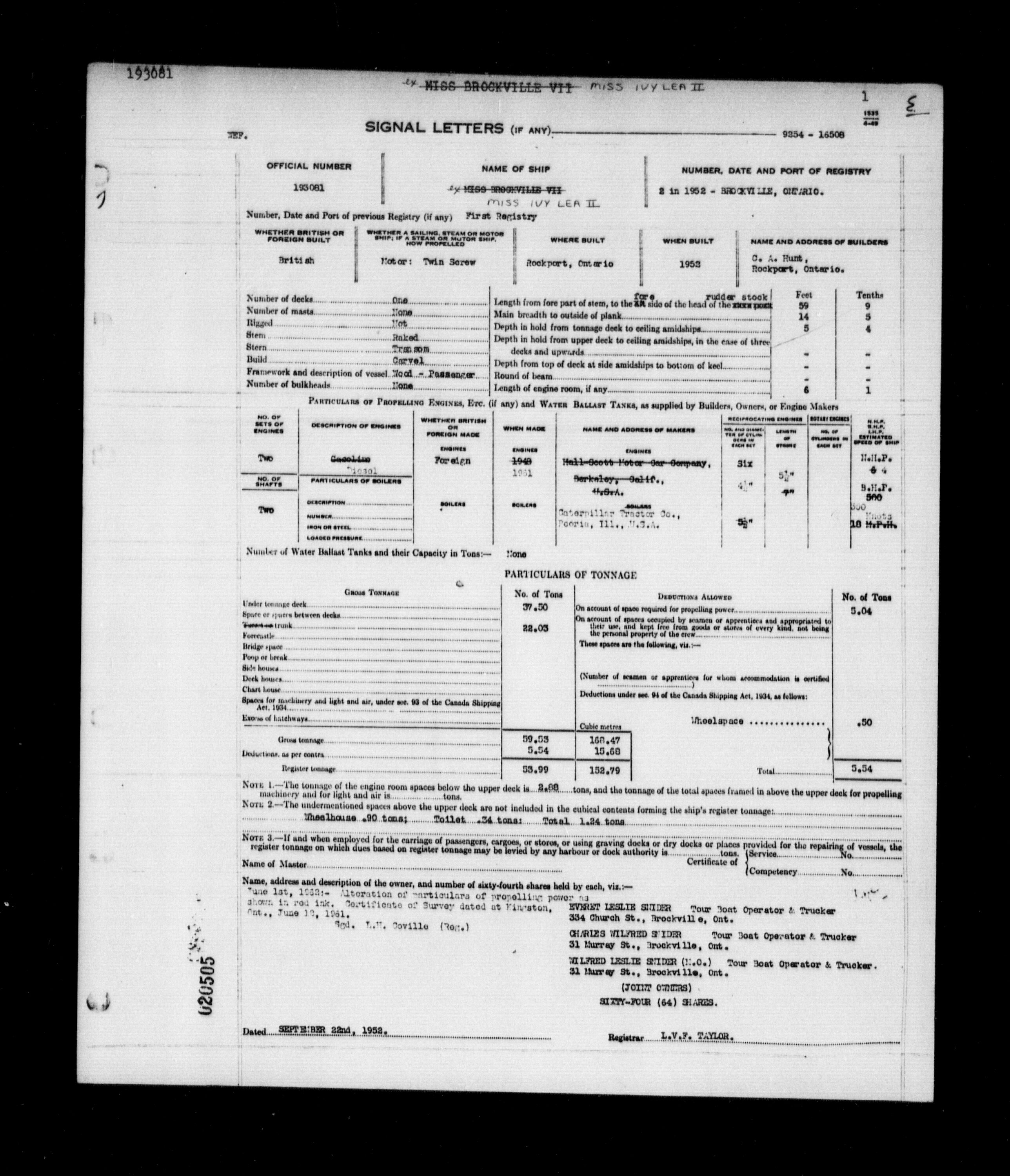 Department of Transport : Registers and ledgers cards of ships closed-out : T-11590