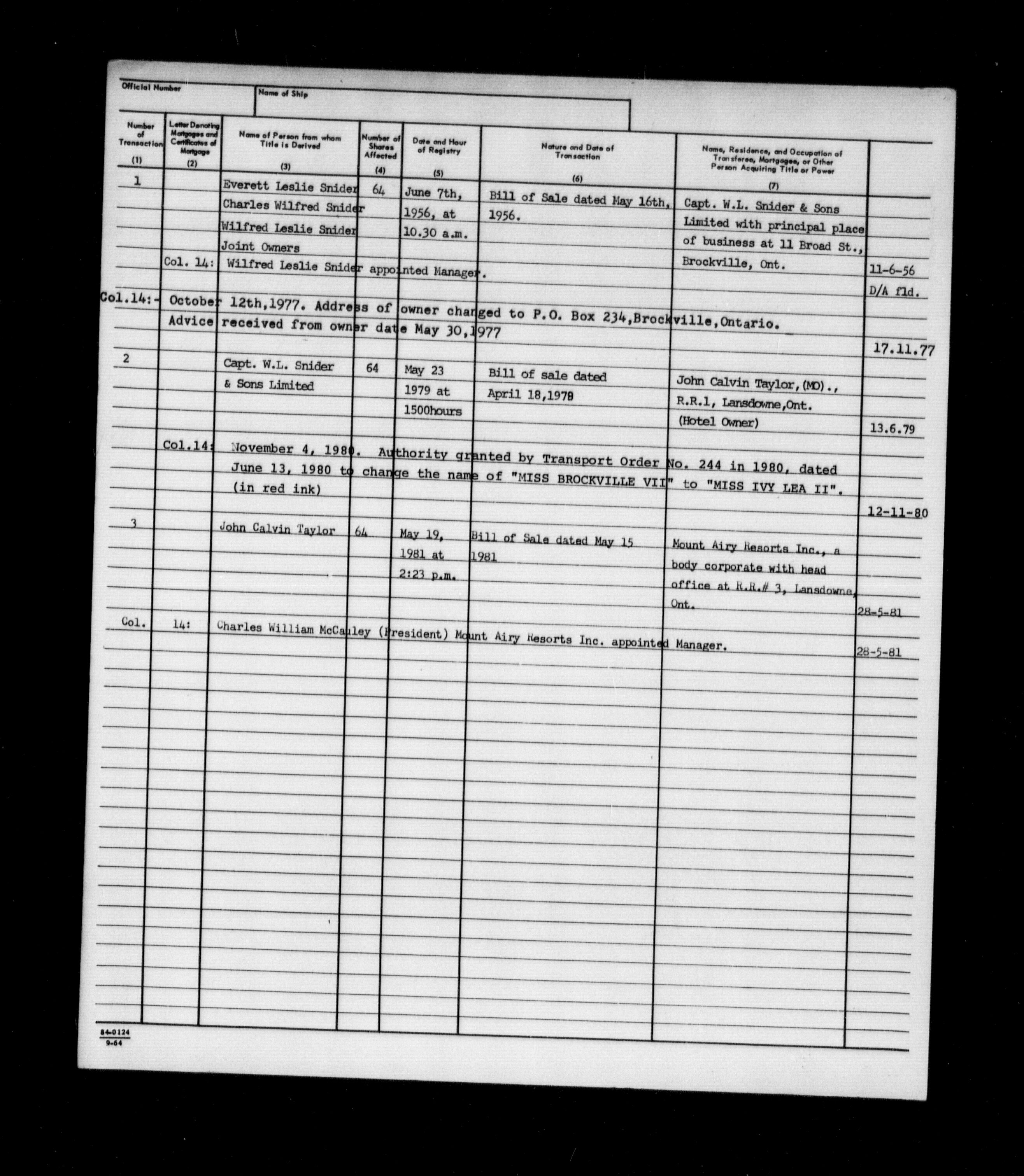 Department of Transport : Registers and ledgers cards of ships closed-out : T-11590