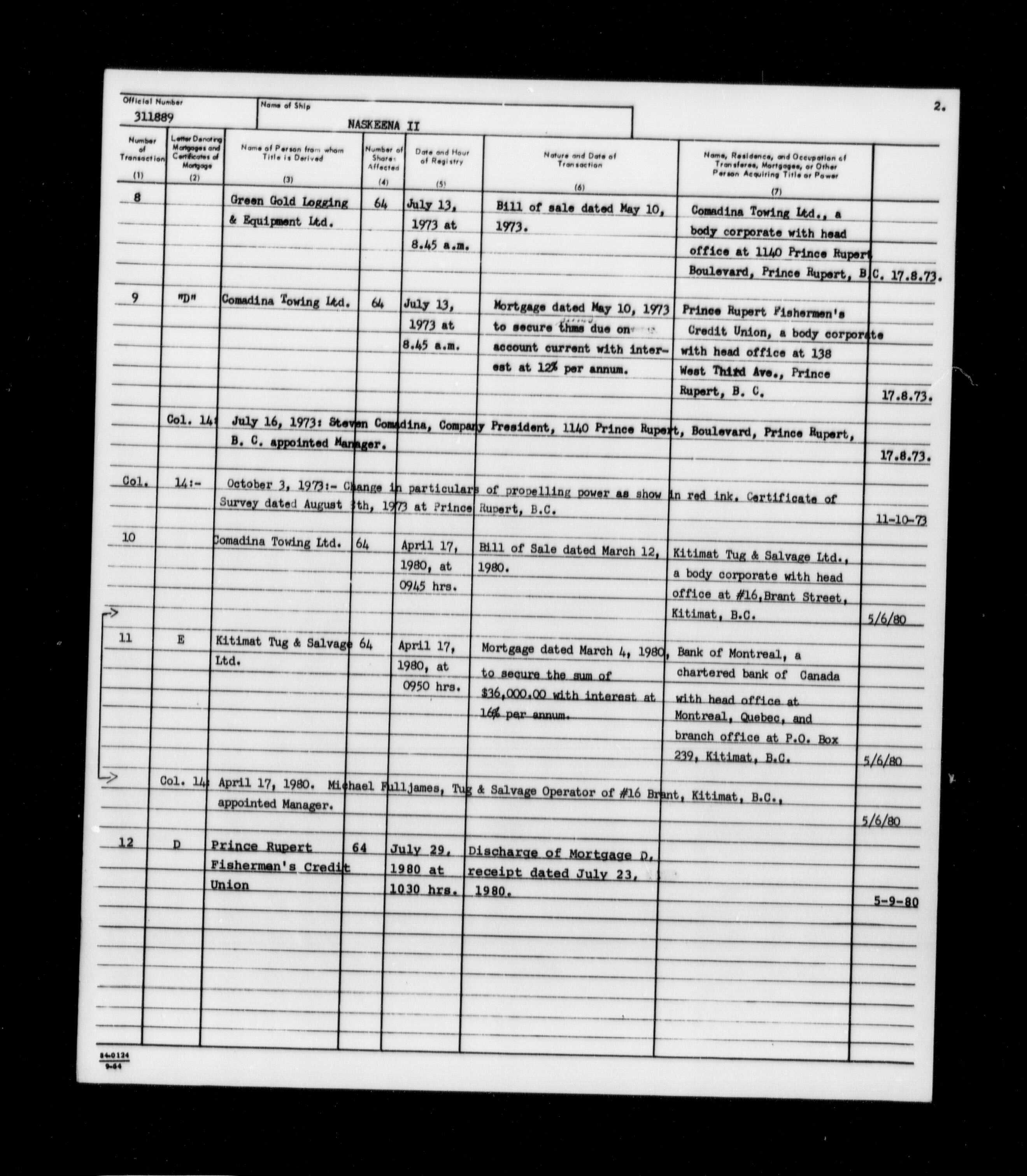 Department of Transport : Registers and ledgers cards of ships closed-out (1904-1983) - 11591