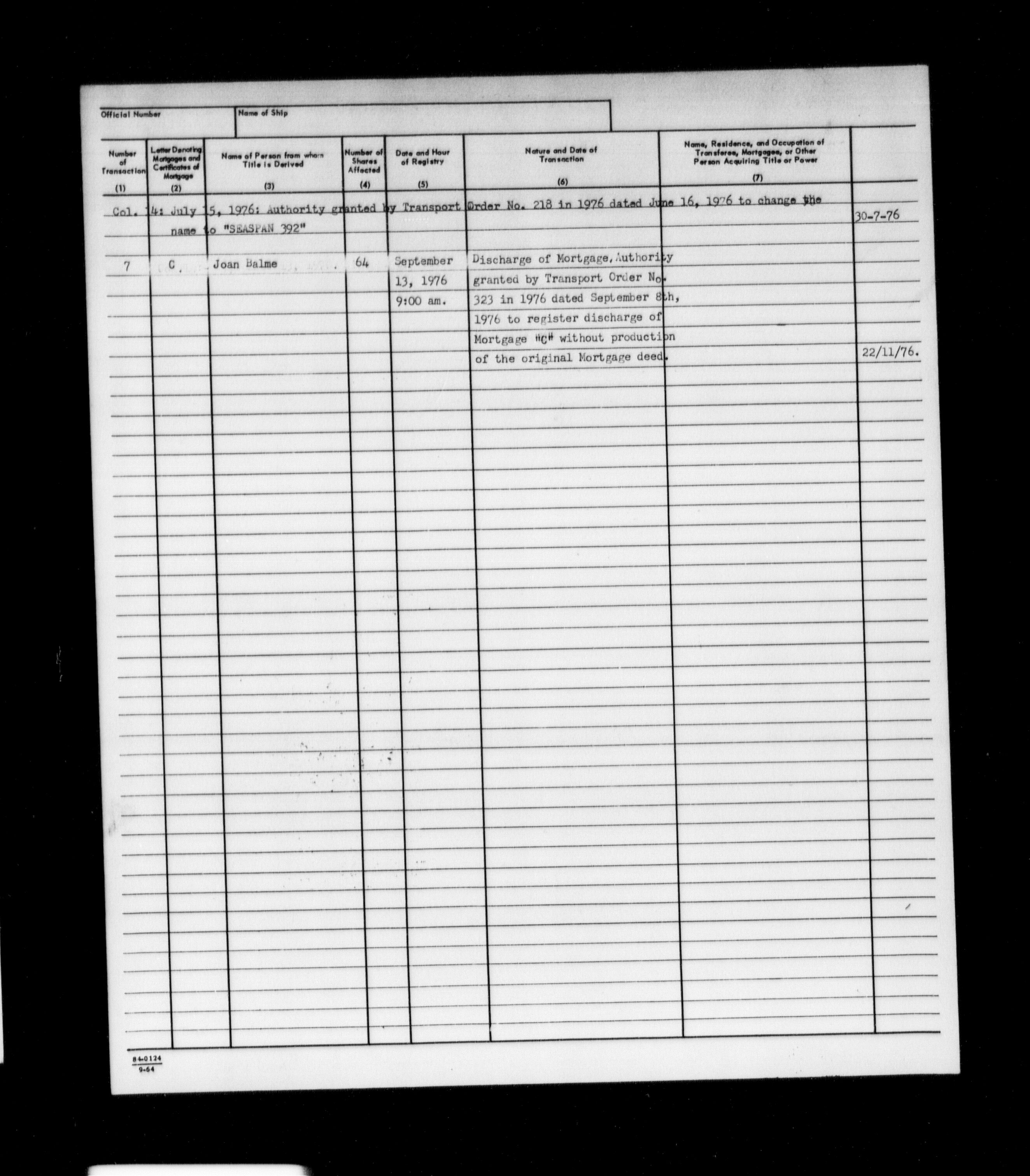 Department of Transport : Registers and ledgers cards of ships closed-out (1904-1983) - 11595