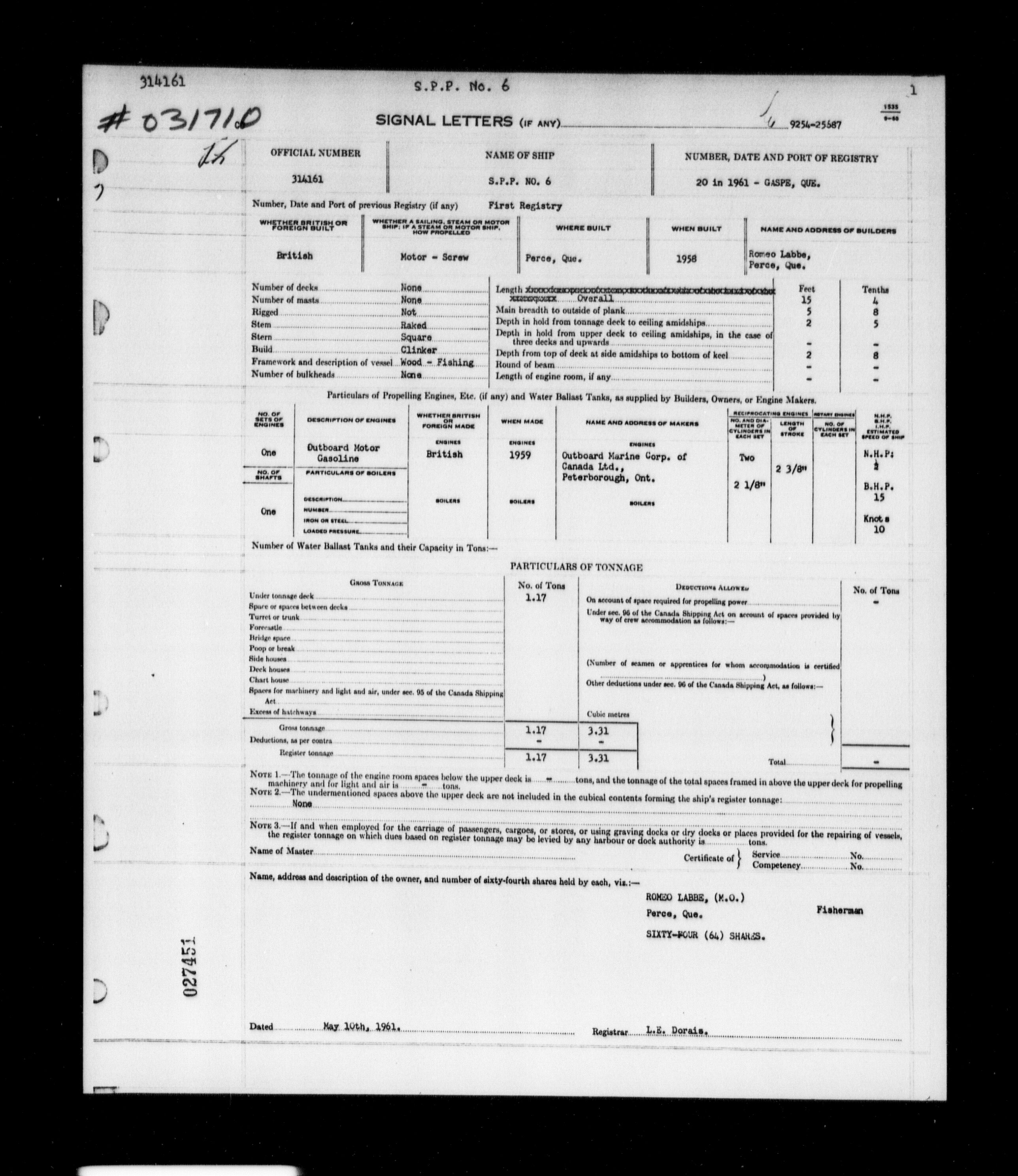 Department of Transport : Registers and ledgers cards of ships closed-out (1904-1983) - 11595