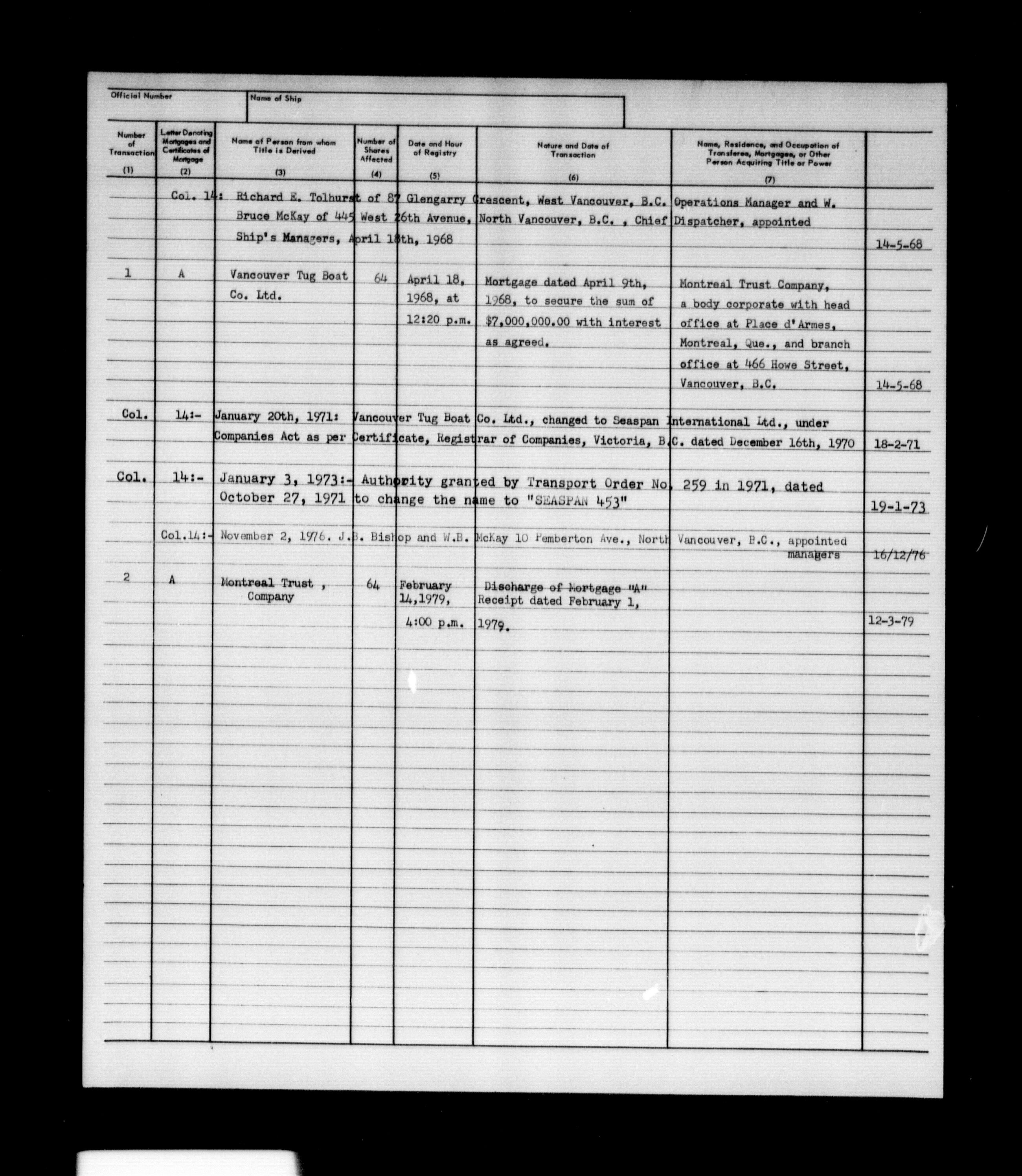 Department of Transport : Registers and ledgers cards of ships closed-out (1904-1983) - 11596