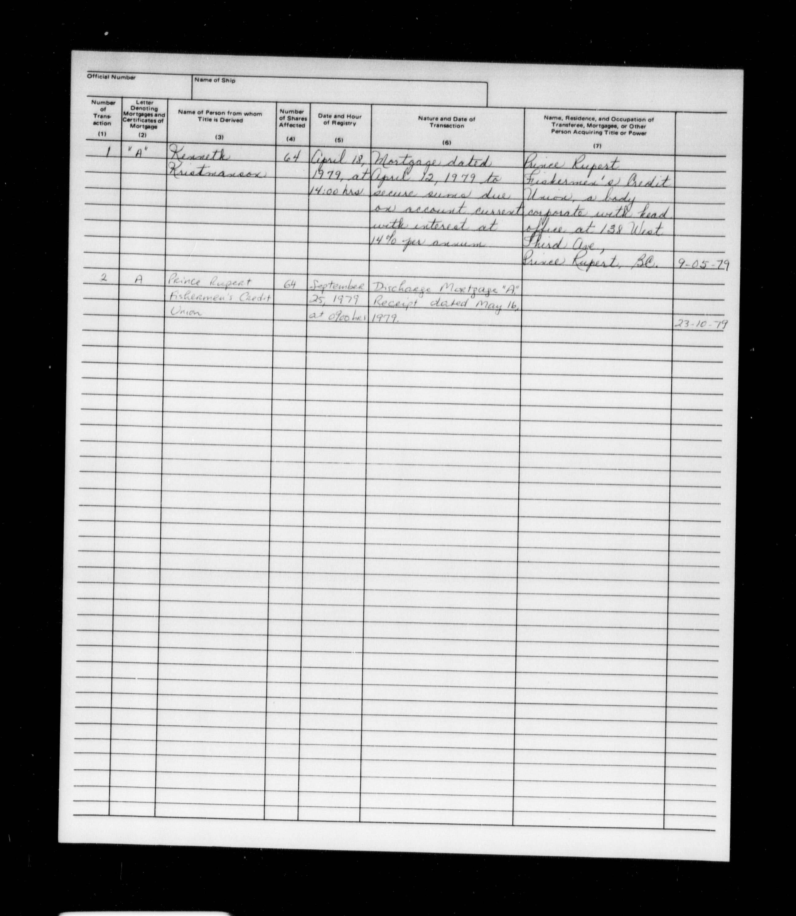 Department of Transport : Registers and ledgers cards of ships closed-out (1904-1983) - 11597