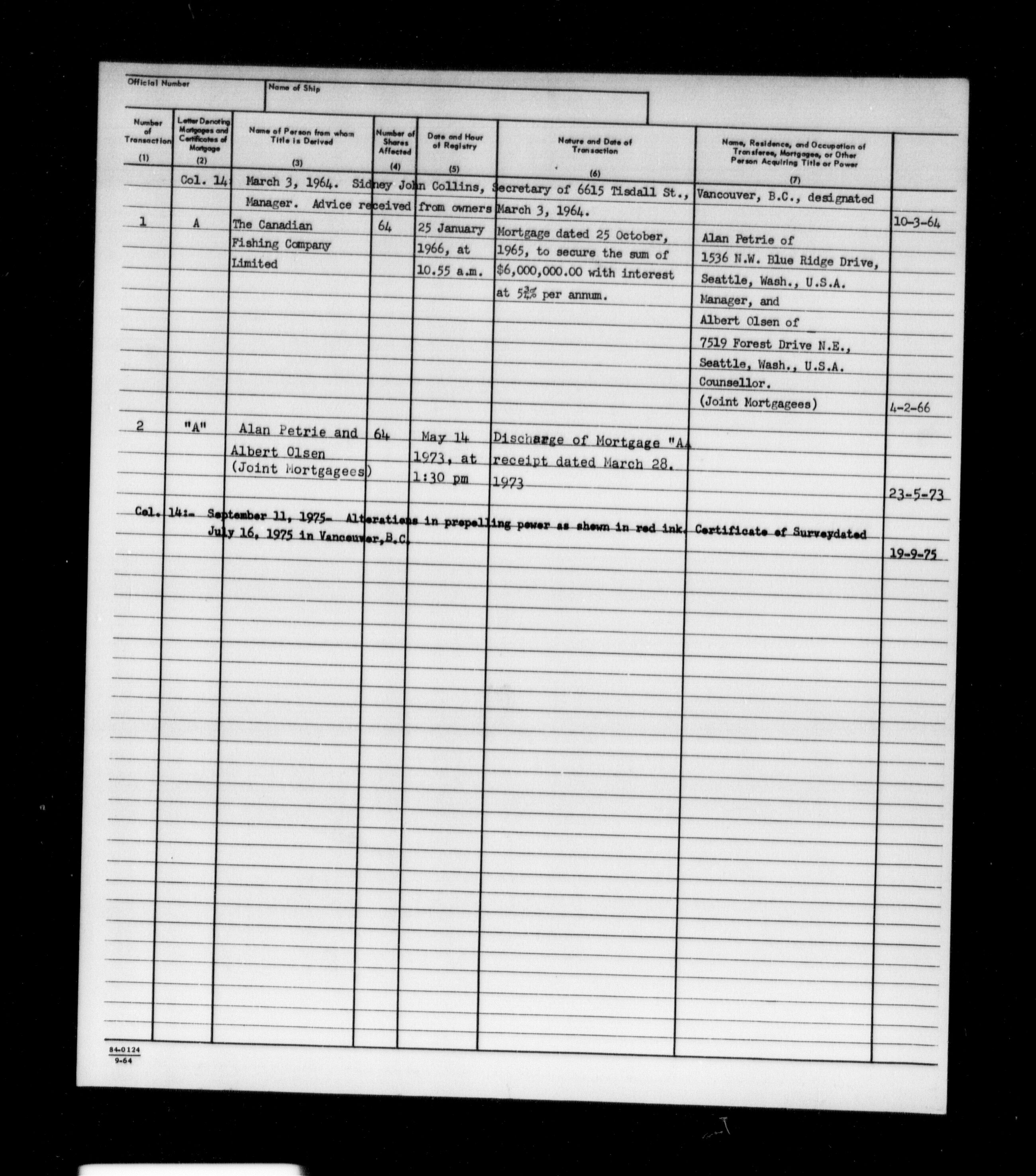Department of Transport : Registers and ledgers cards of ships closed-out (1904-1983) - 11597