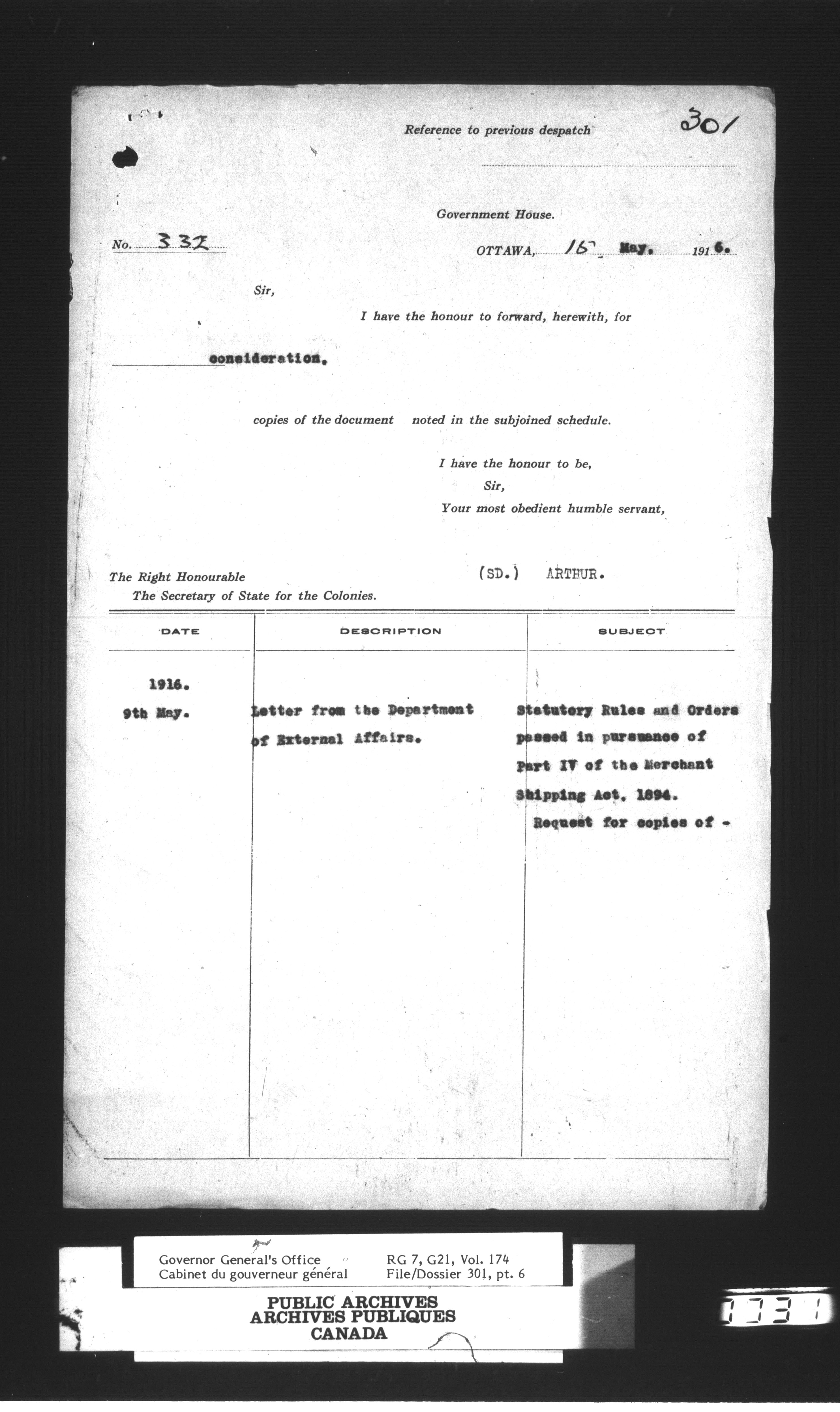 Vol. 174, file 301, pt. 6-177, file 301-1