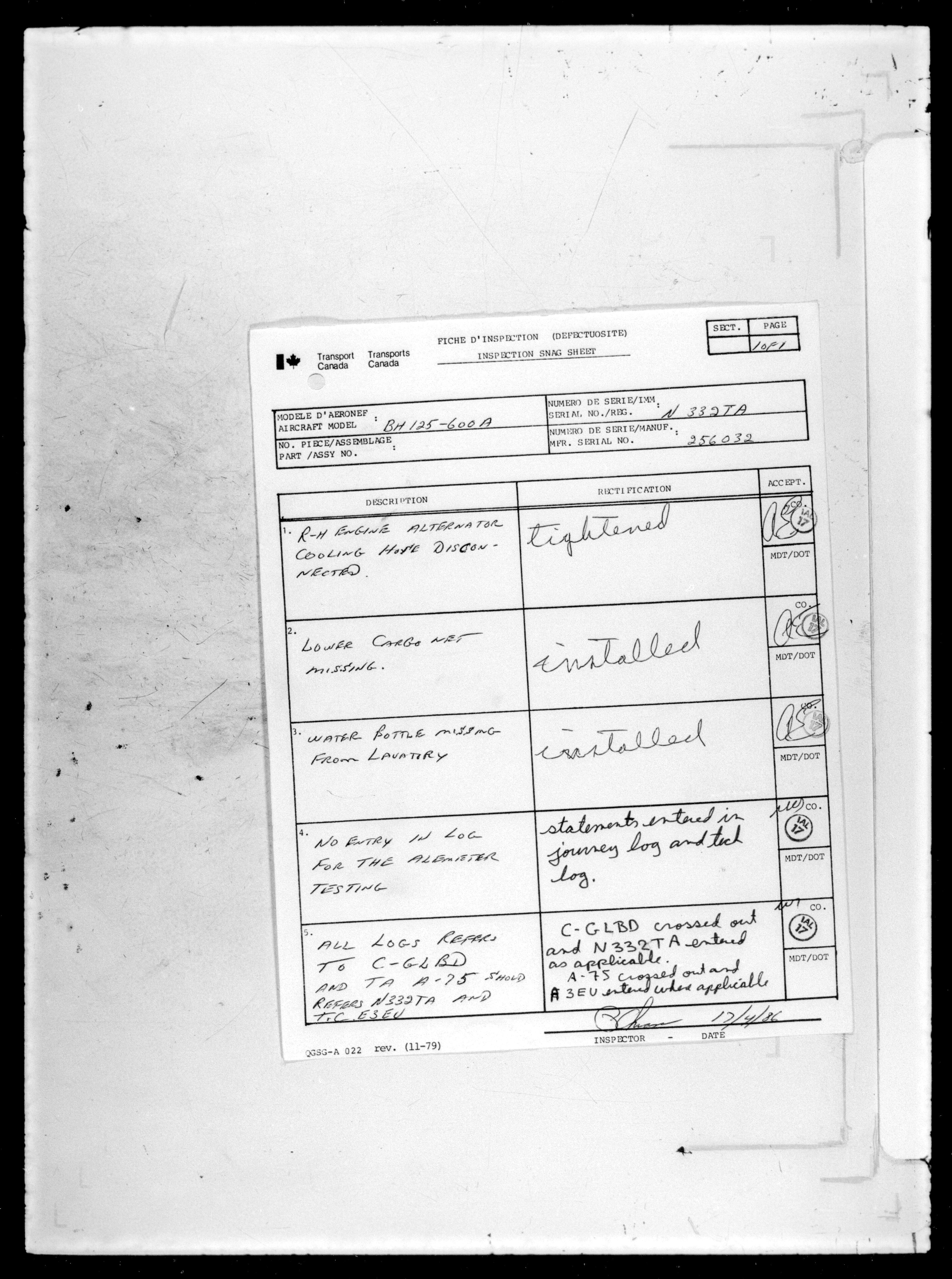 Department of Transport : Civil aircraft registration, inspection and operation files, block 5008, 1920-1986