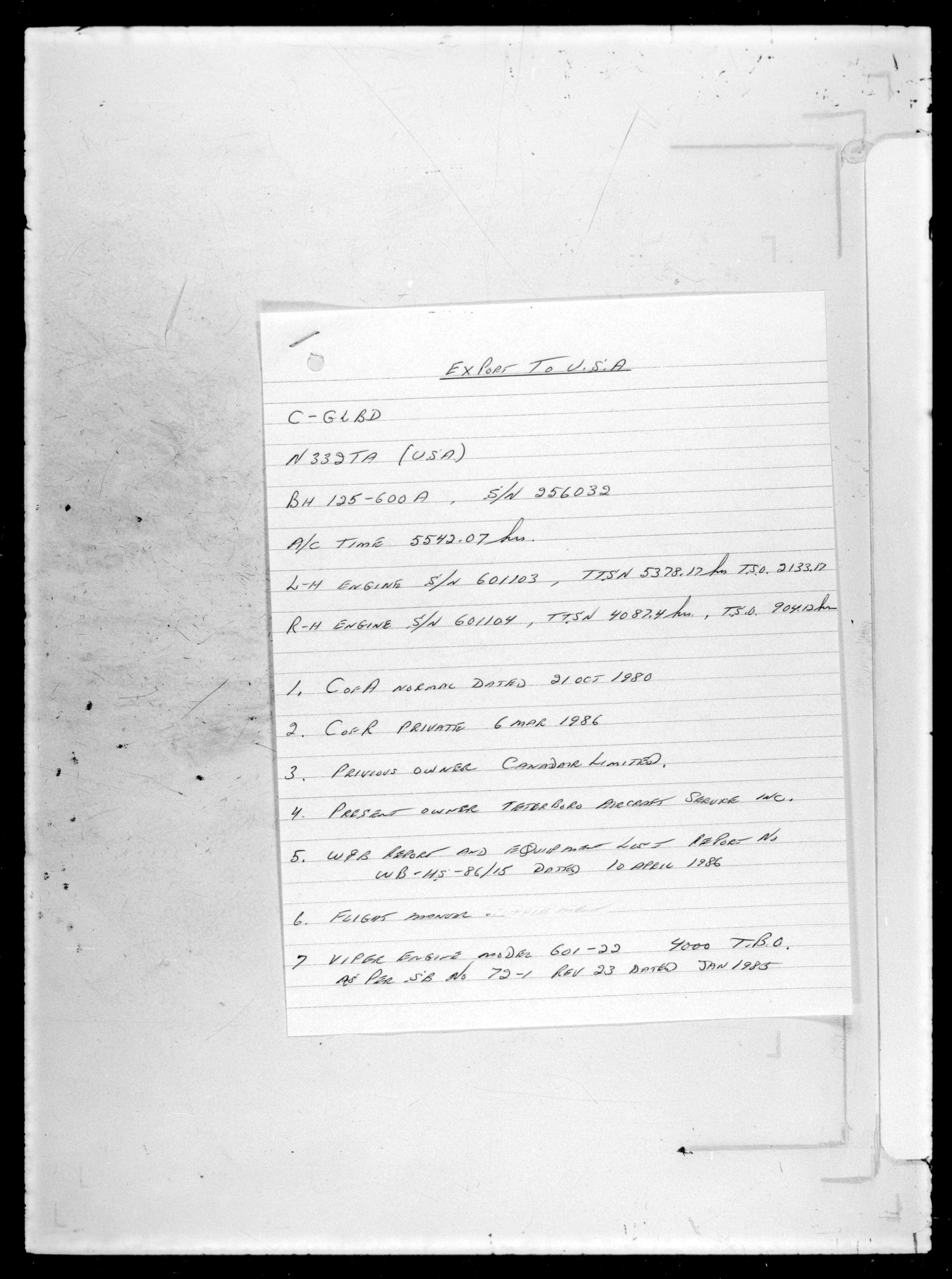Department of Transport : Civil aircraft registration, inspection and operation files, block 5008, 1920-1986