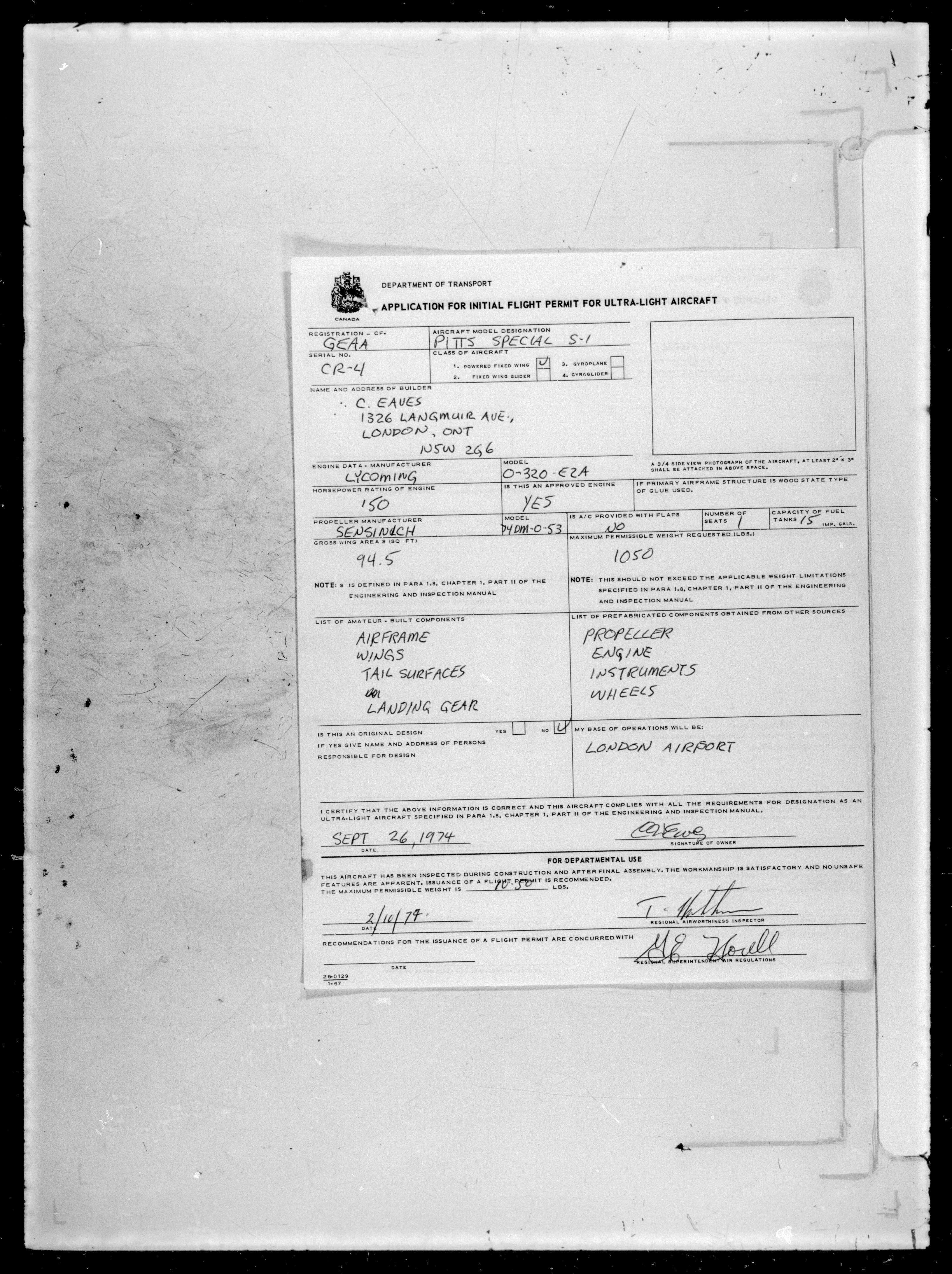Department of Transport : Civil aircraft registration, inspection and operation files, block 5008, 1920-1986