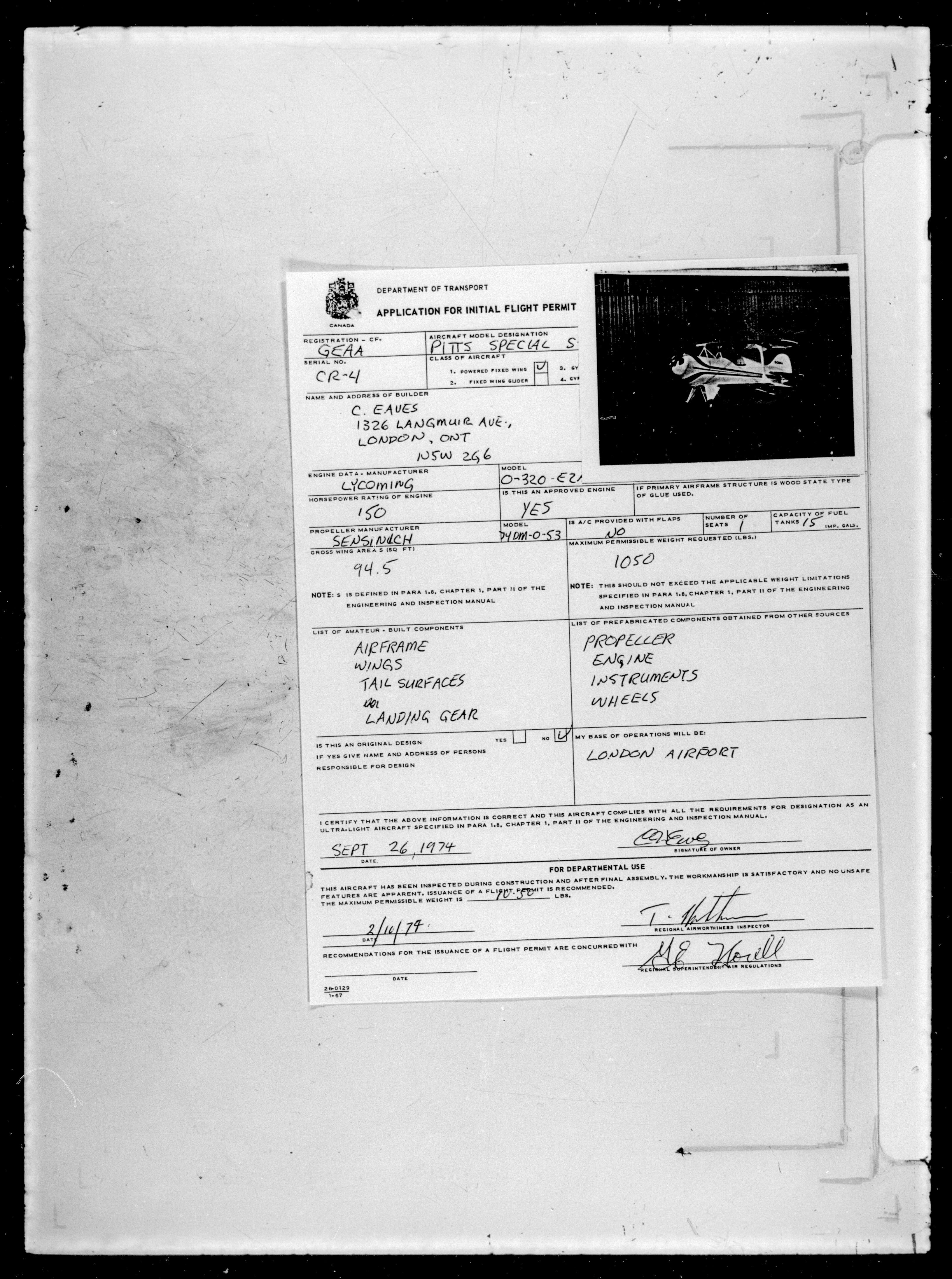 Department of Transport : Civil aircraft registration, inspection and operation files, block 5008, 1920-1986