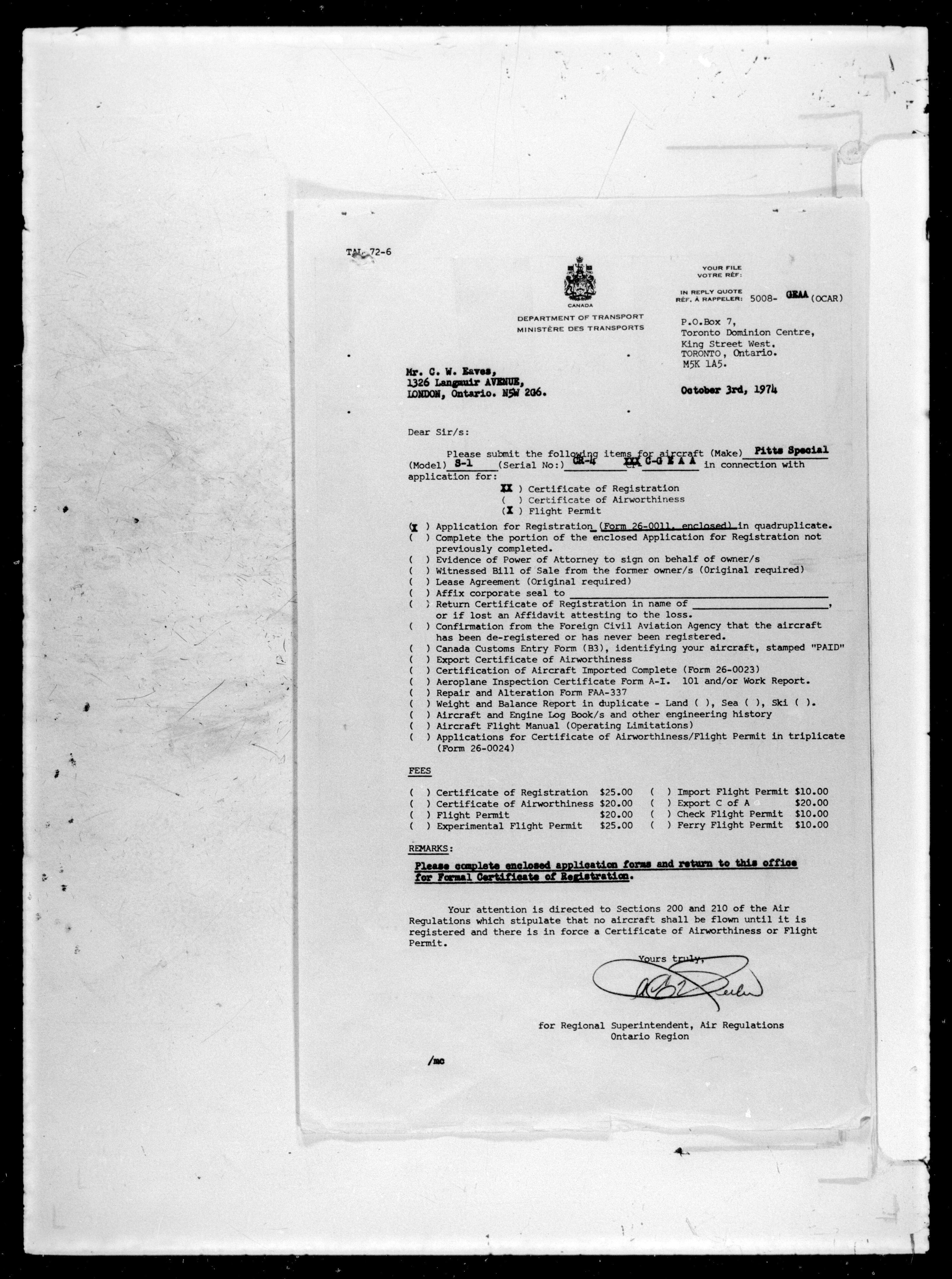 Department of Transport : Civil aircraft registration, inspection and operation files, block 5008, 1920-1986