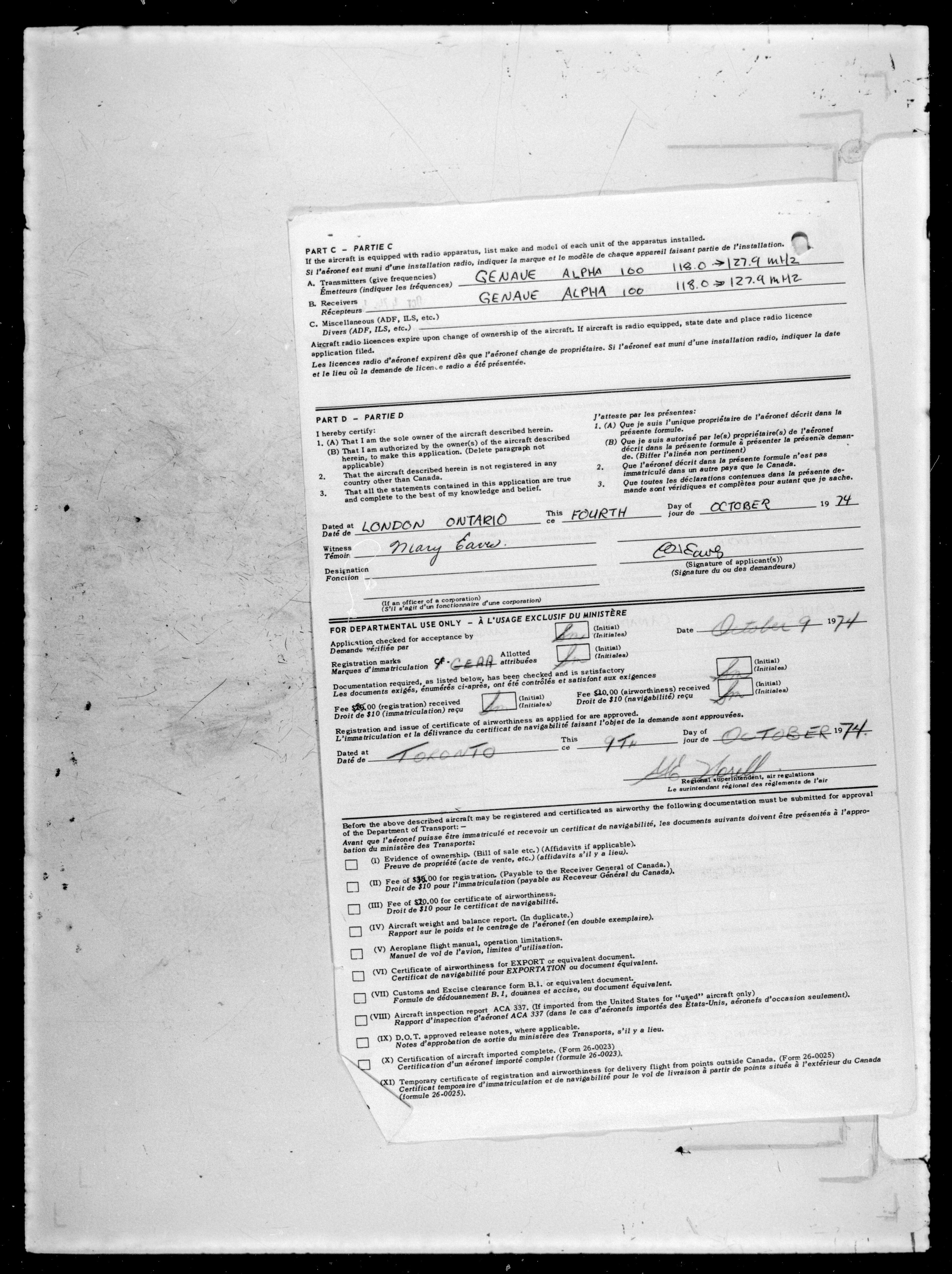 Department of Transport : Civil aircraft registration, inspection and operation files, block 5008, 1920-1986